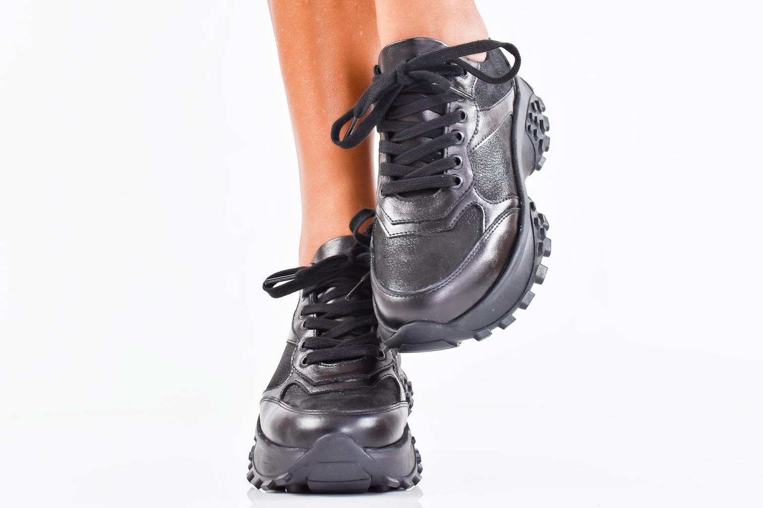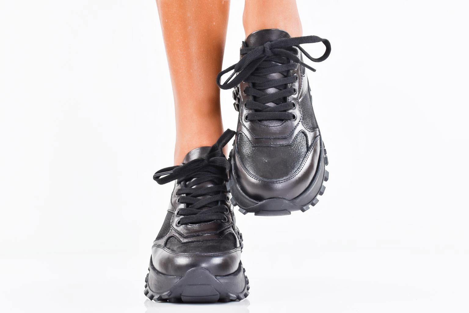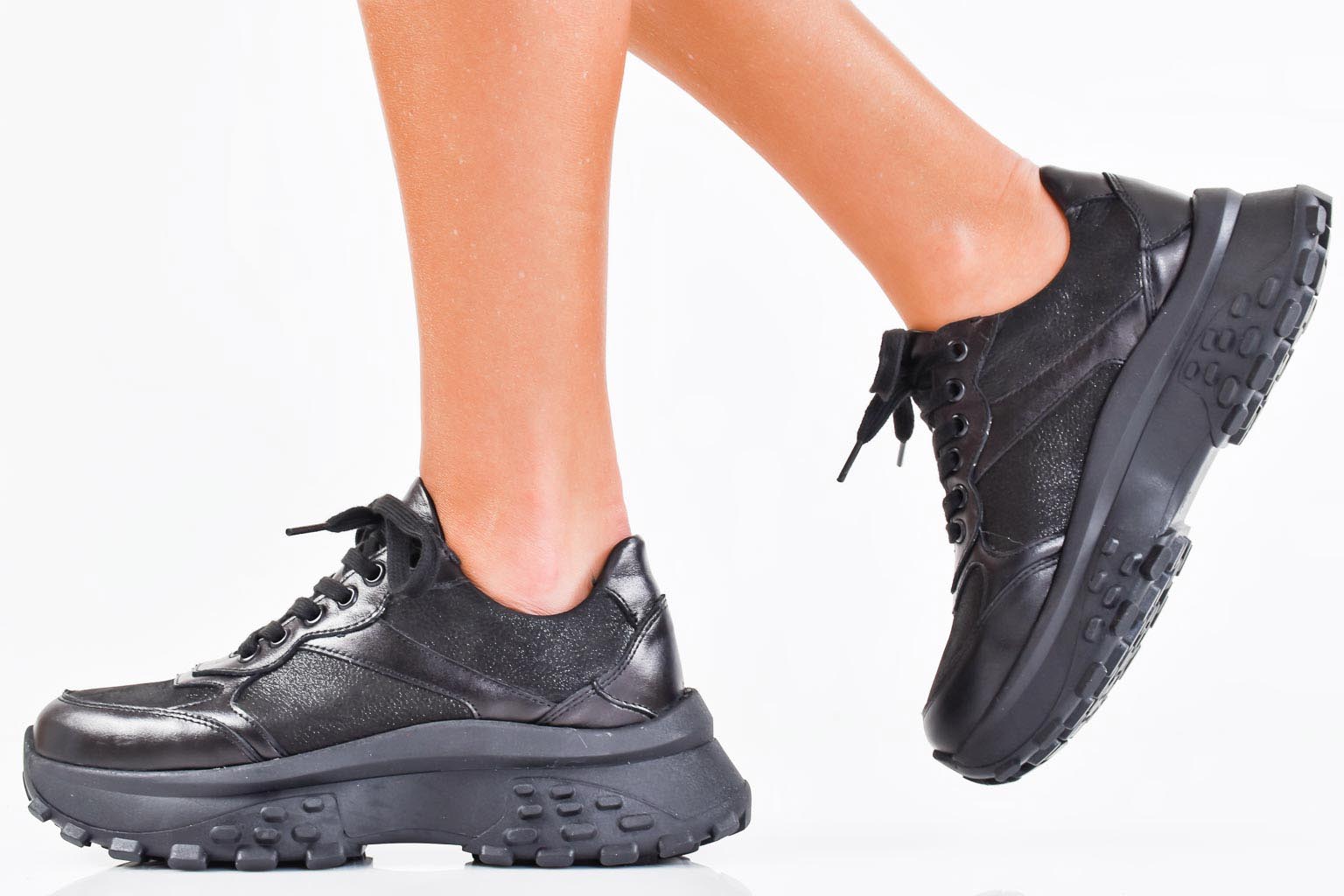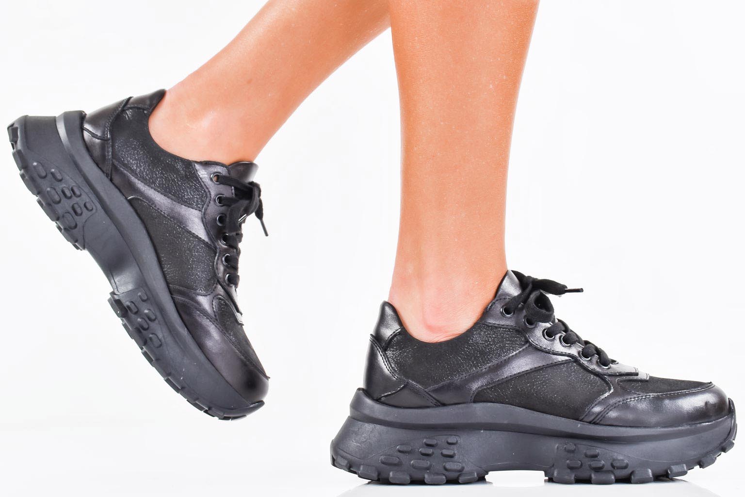 Дамски сникърси естествена кожа черни EOBUVKIBG