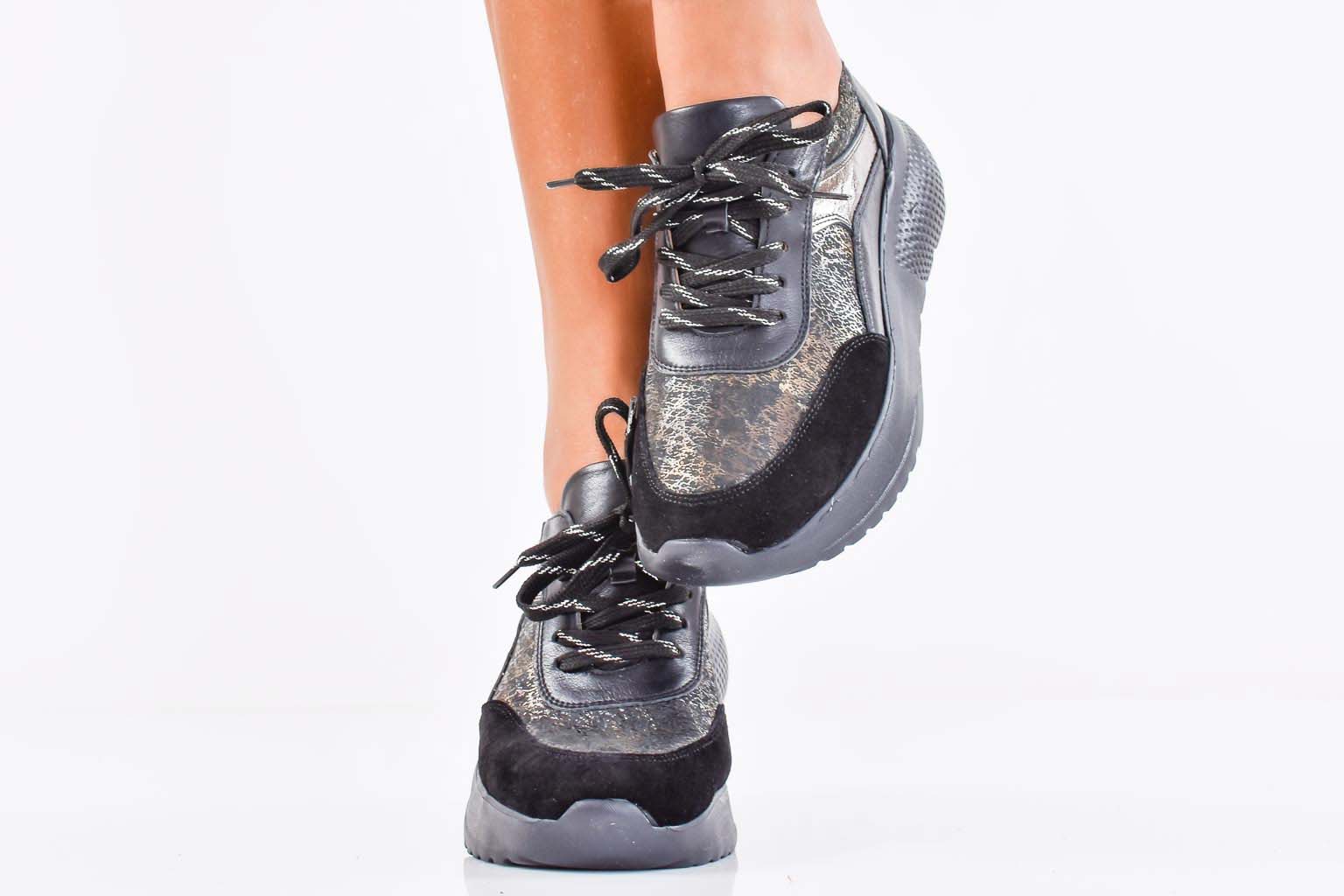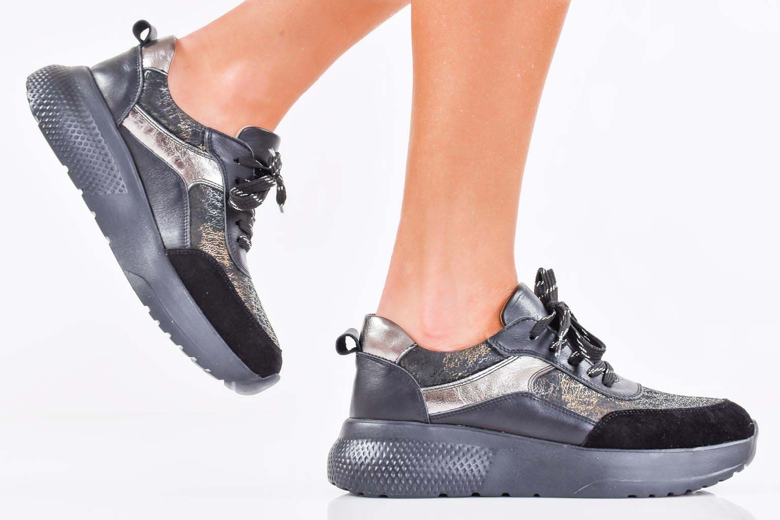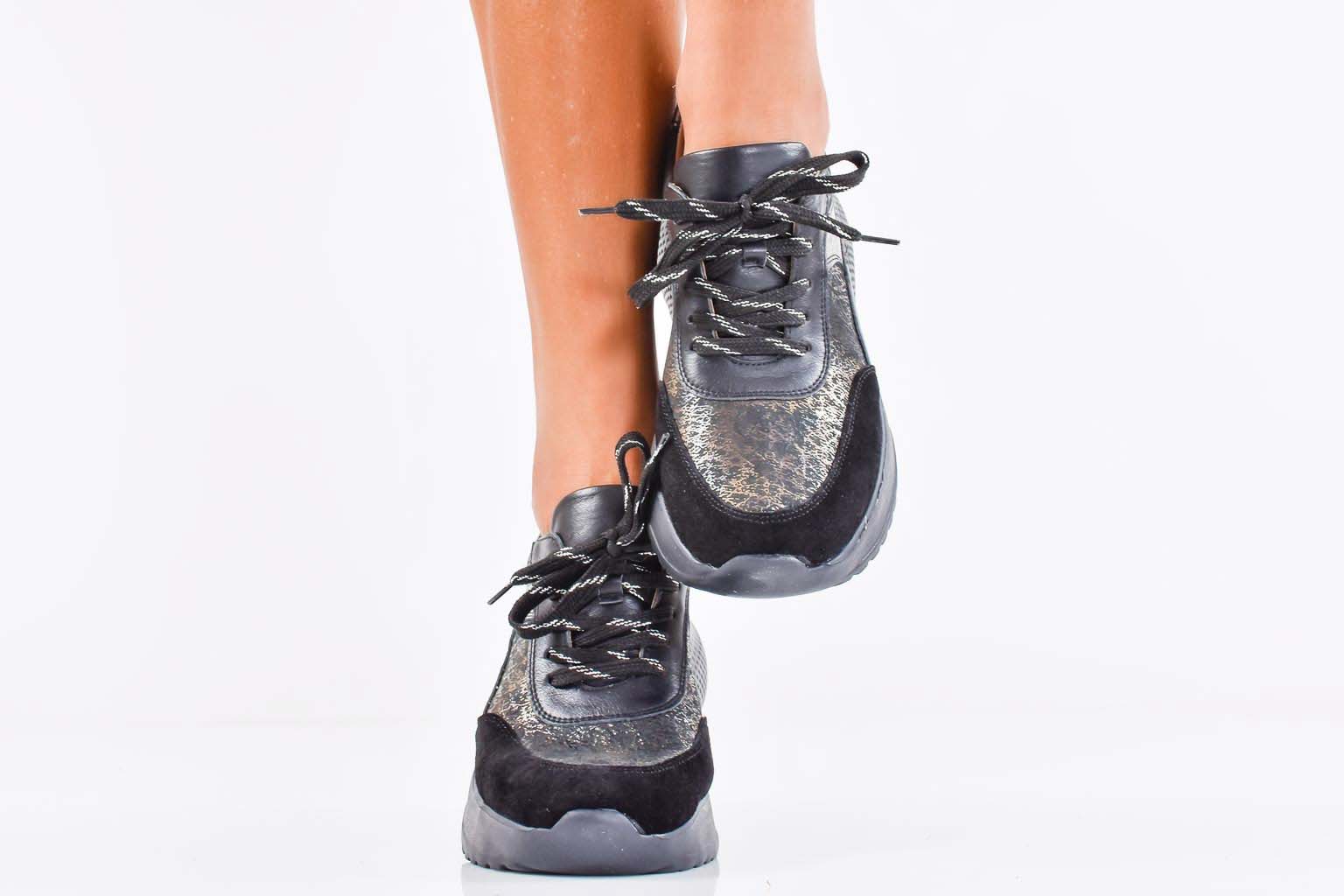 Дамски сникърси естествена кожа черни EOBUVKIBG #502-7198
