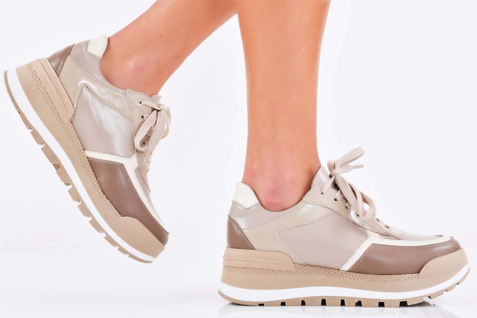 Дамски сникърси естествена кожа бежови EOBUVKIBG