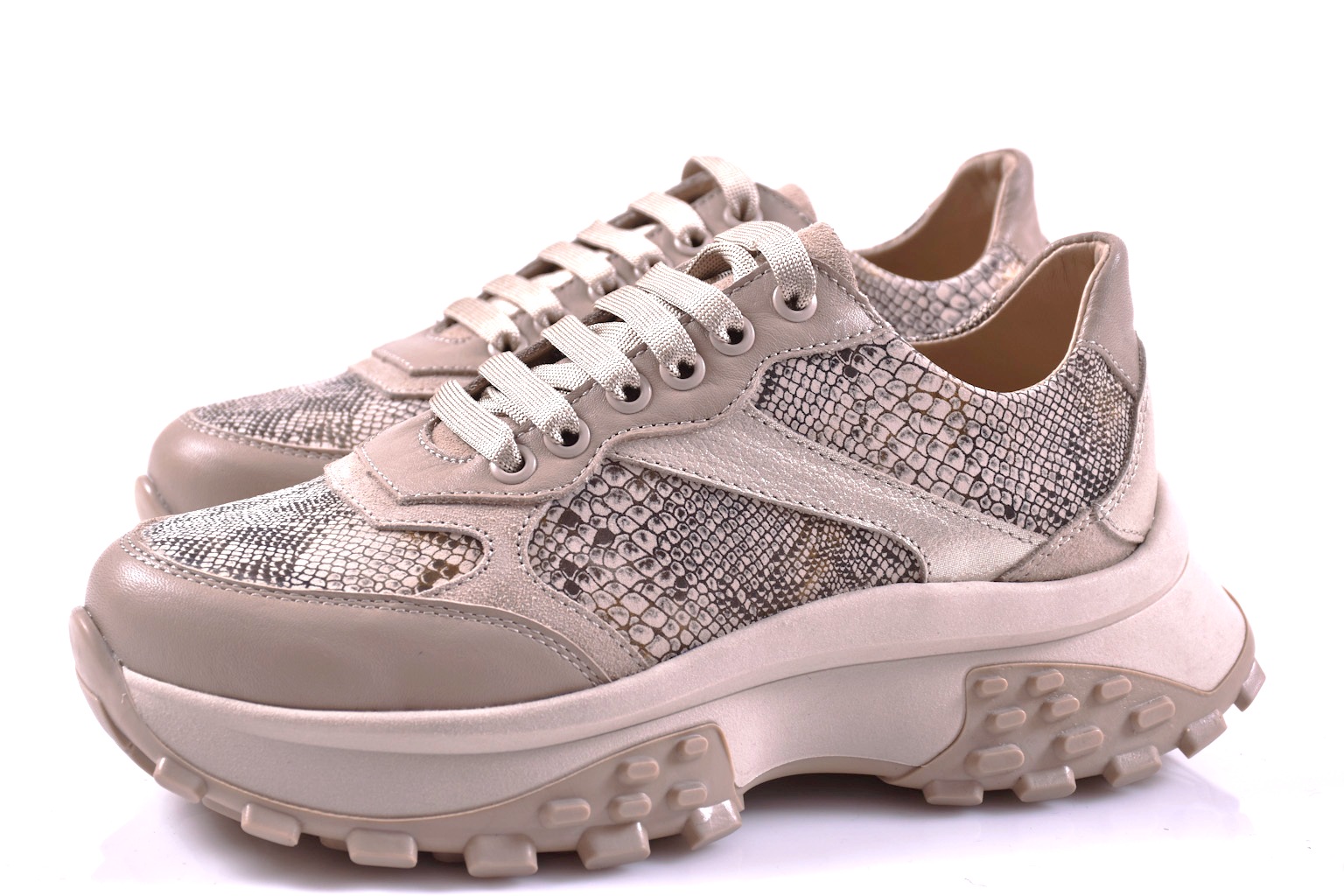 Дамски сникърси естествена кожа бежови EOBUVKIBG #502-7229