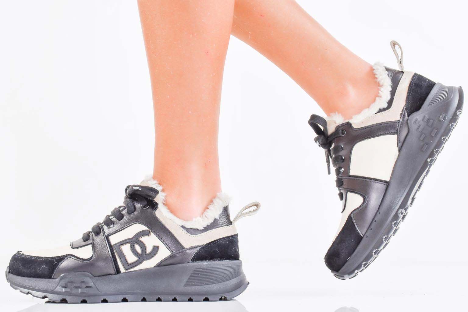 Дамски сникърси естествена кожа черни EOBUVKIBG
