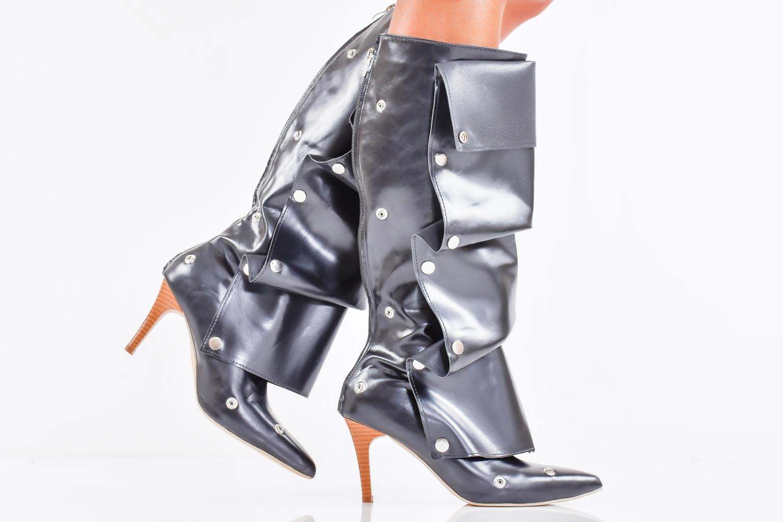 Дамски елегантни ботуши черни EOBUVKIBG #502-7449