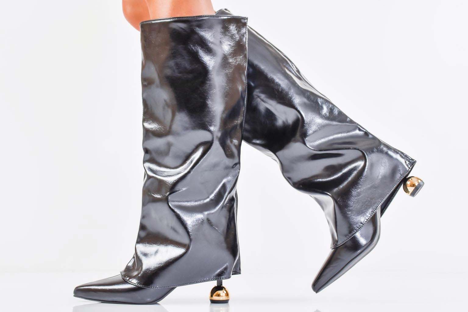 Дамски елегантни ботуши черни EOBUVKIBG #502-7451
