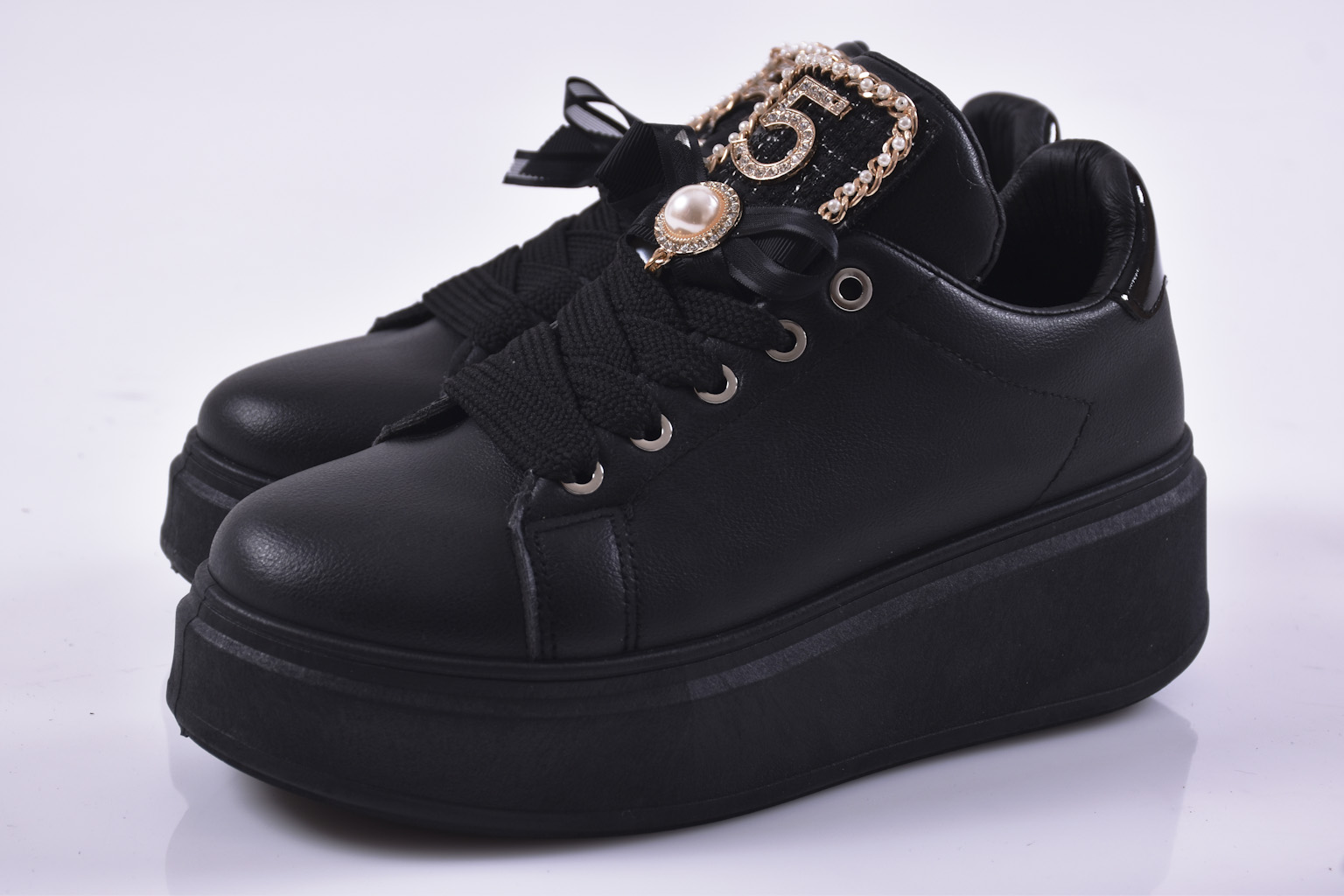 Дамски сникърси черни EOBUVKIBG #502-7244