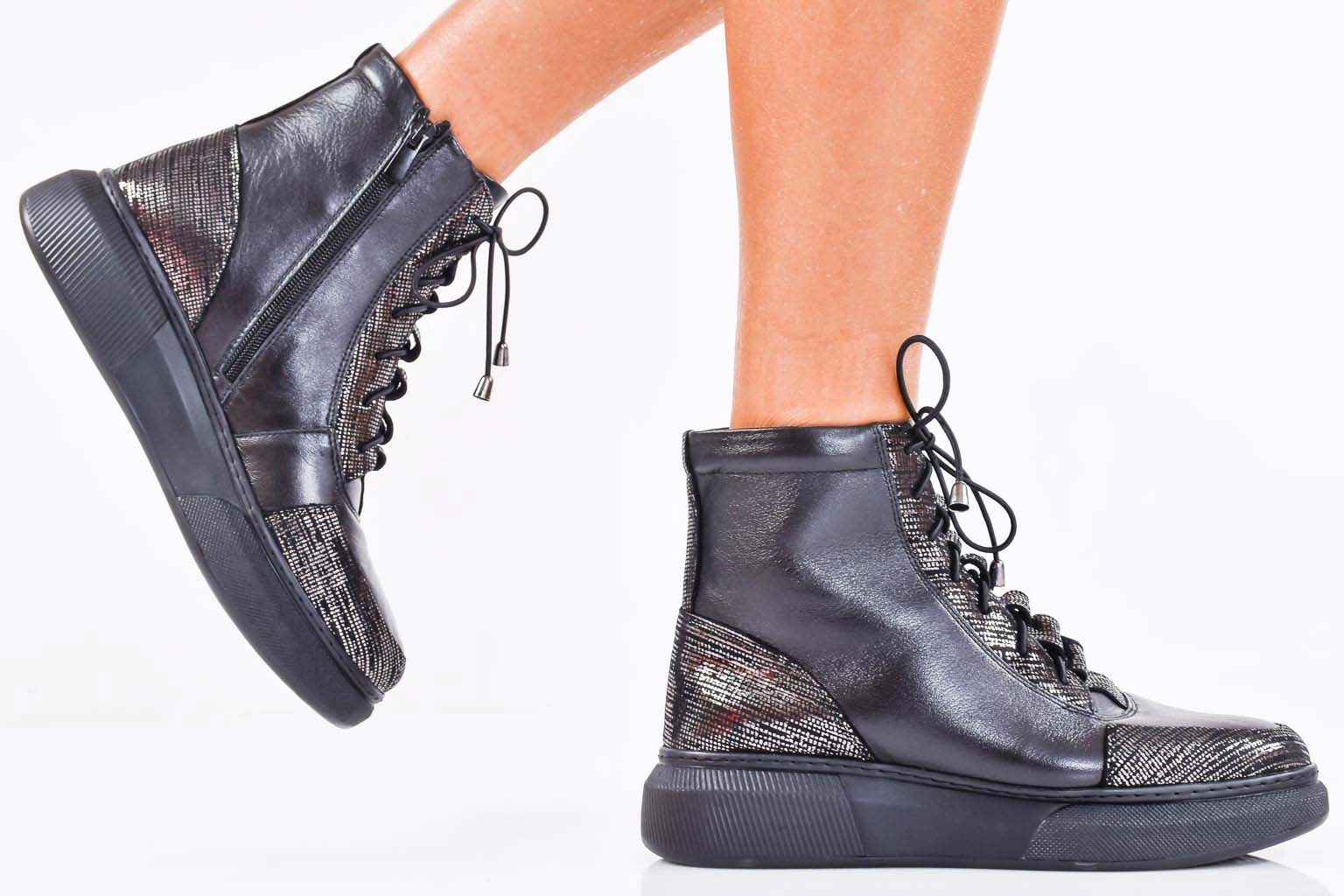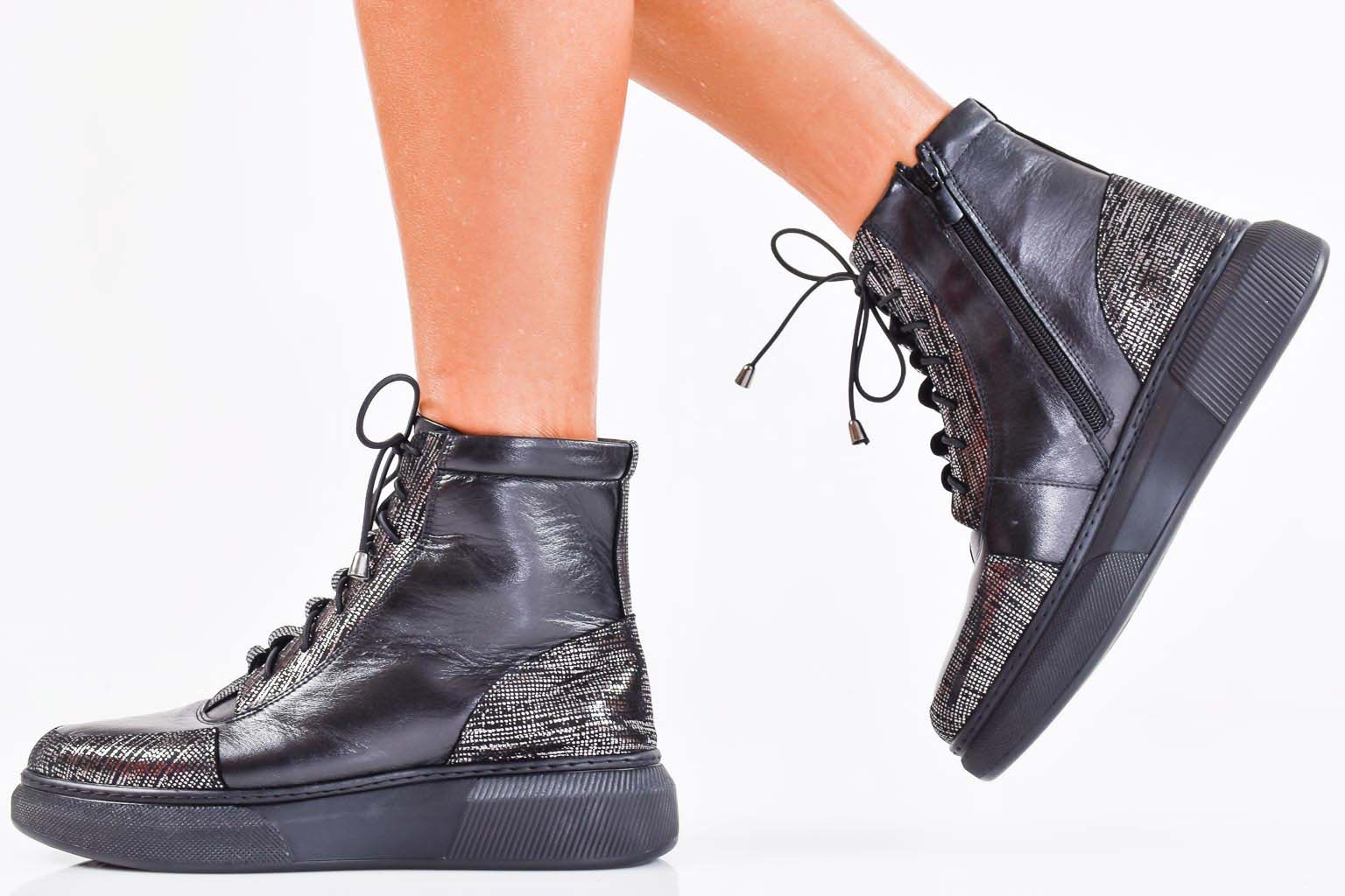 Дамски боти на платформа естествена кожа черни EOBUVKIBG