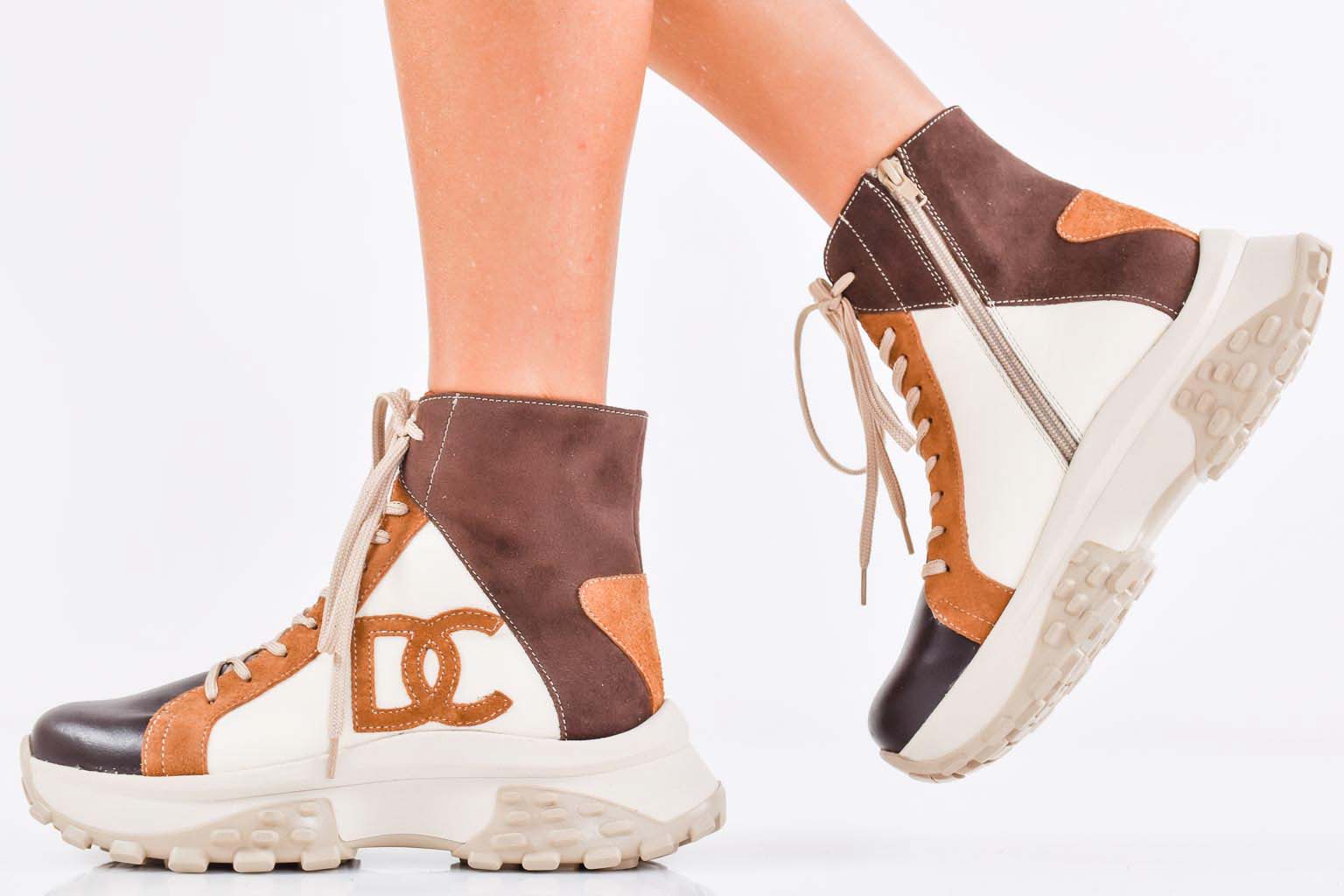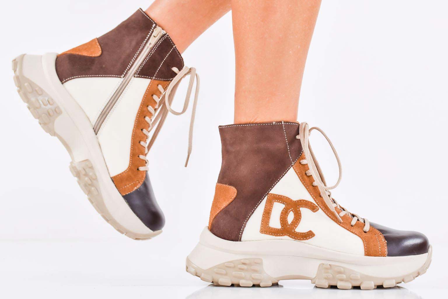 Дамски боти естествена кожа кафяви EOBUVKIBG #502-7424
