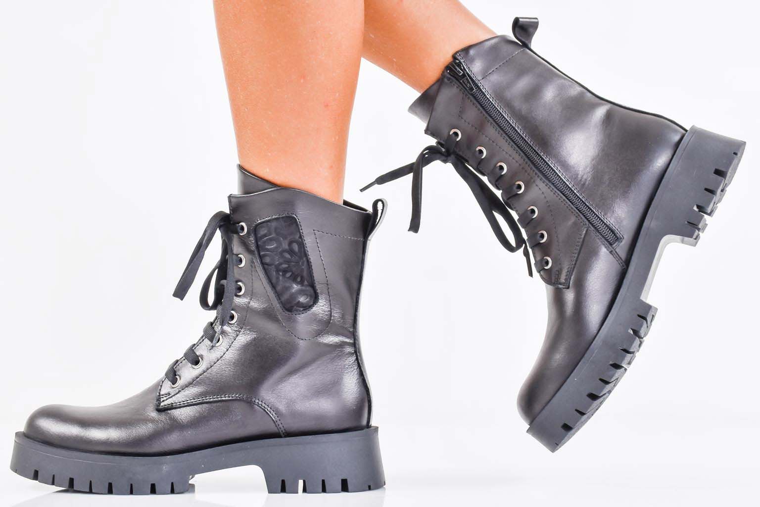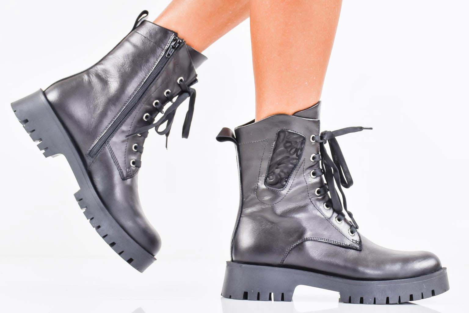 Дамски боти естествена кожа черни EOBUVKIBG