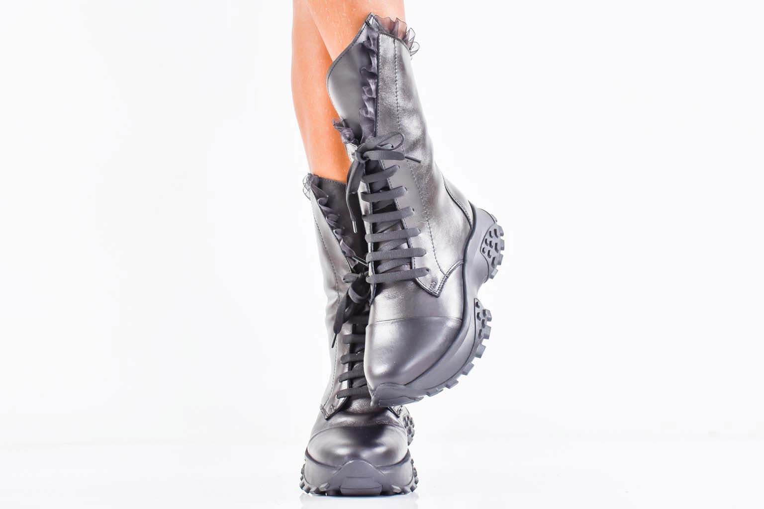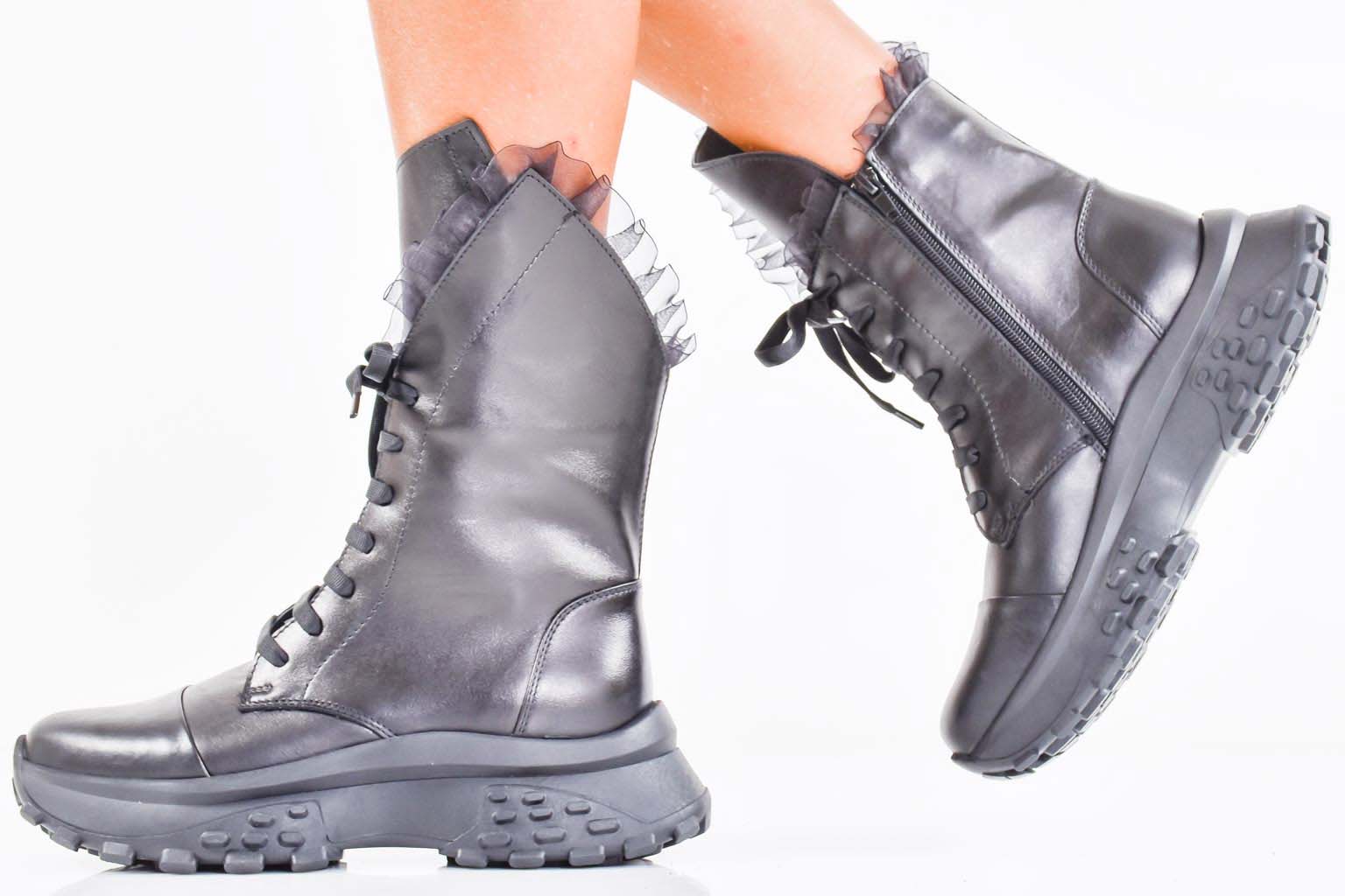 Дамски боти естествена кожа черни EOBUVKIBG