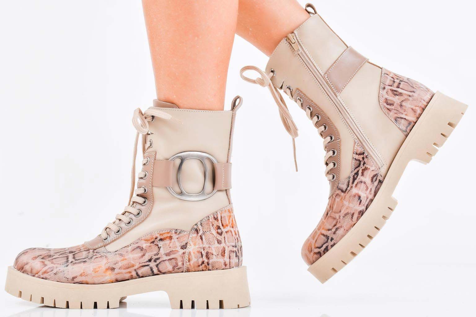 Дамски боти естествена кожа бежов EOBUVKIBG #502-7477