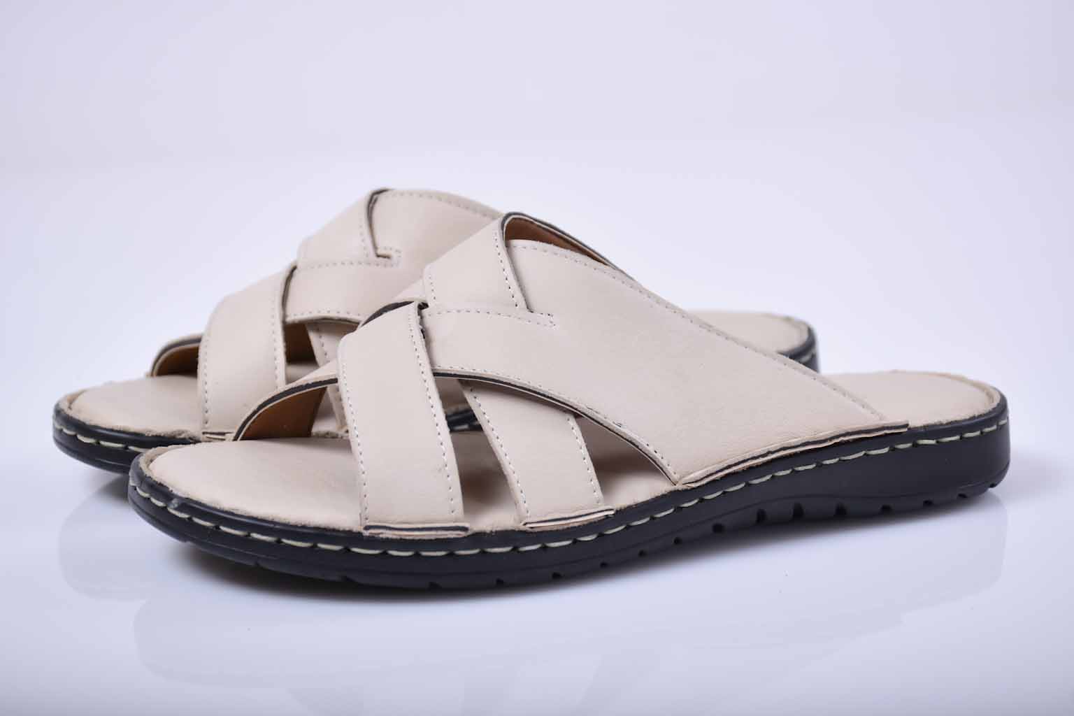 Мъжки чехли естествена кожа кафяви EOBUVKIBG