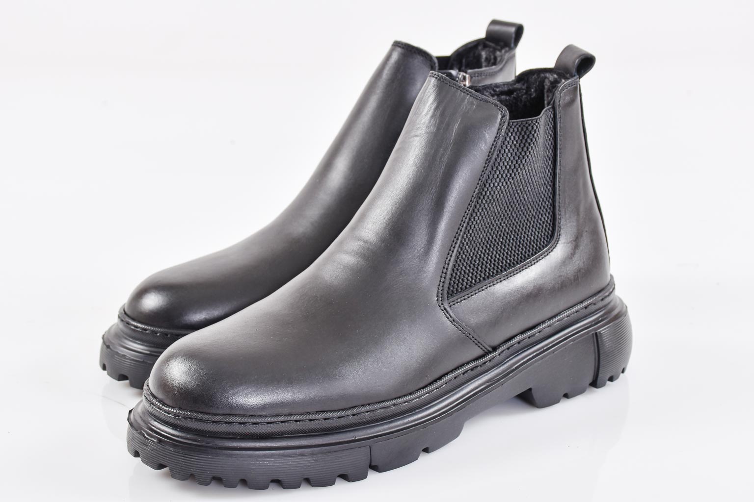 Мъжки боти естествена кожа черни EOBUVKIBG #502-7286