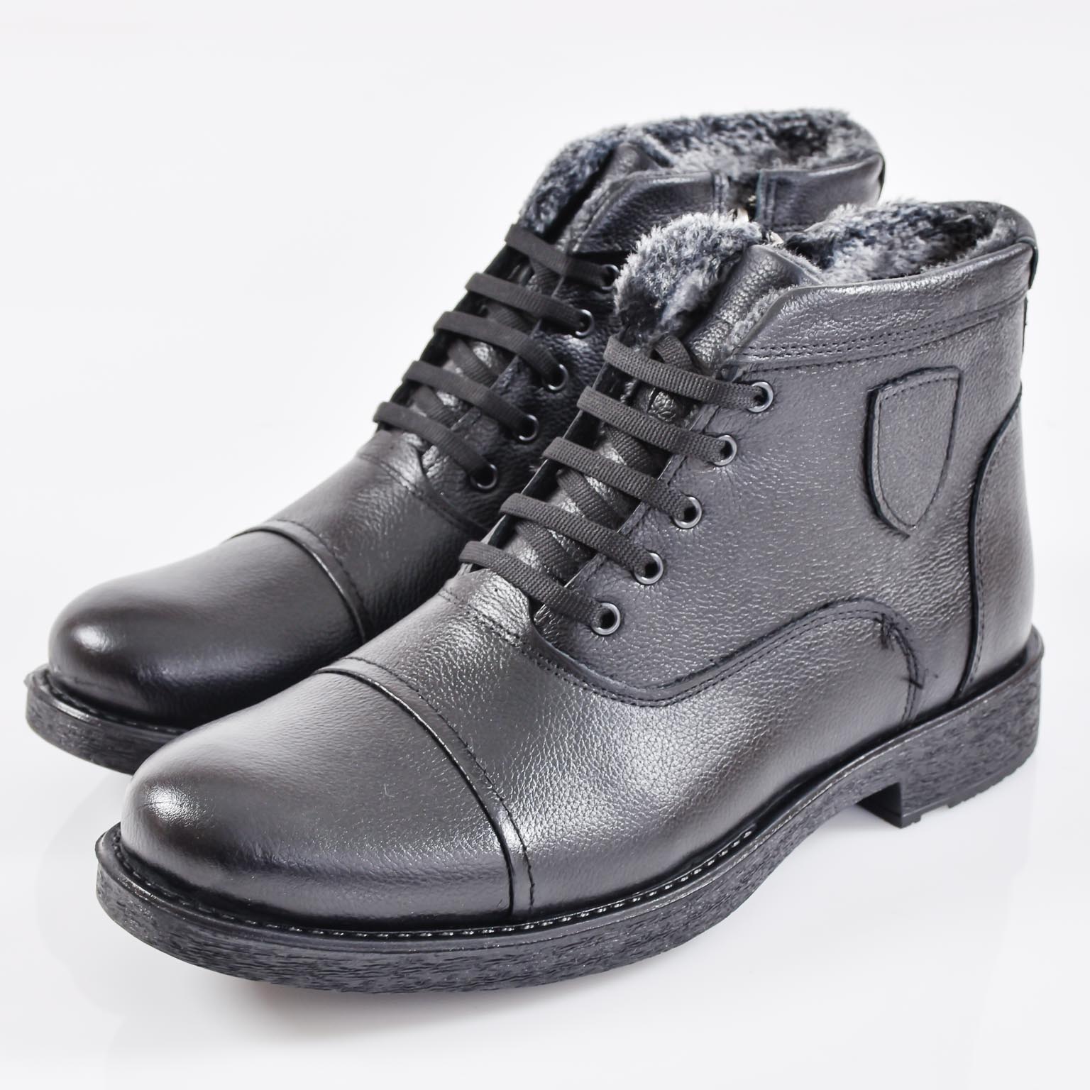 Мъжки боти естествена кожа черни EOBUVKIBG