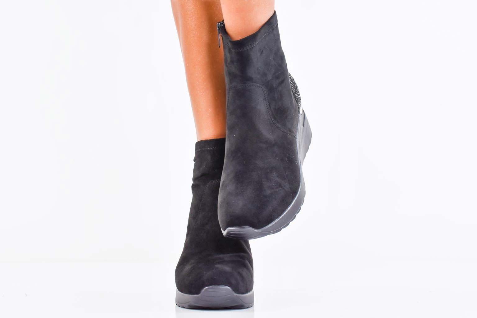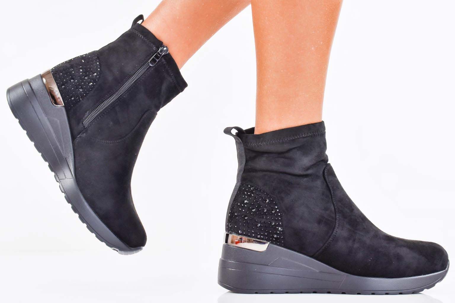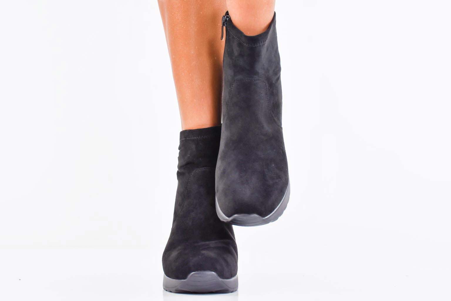 Дамски боти на платформа естествен велур черни EOBUVKIBG