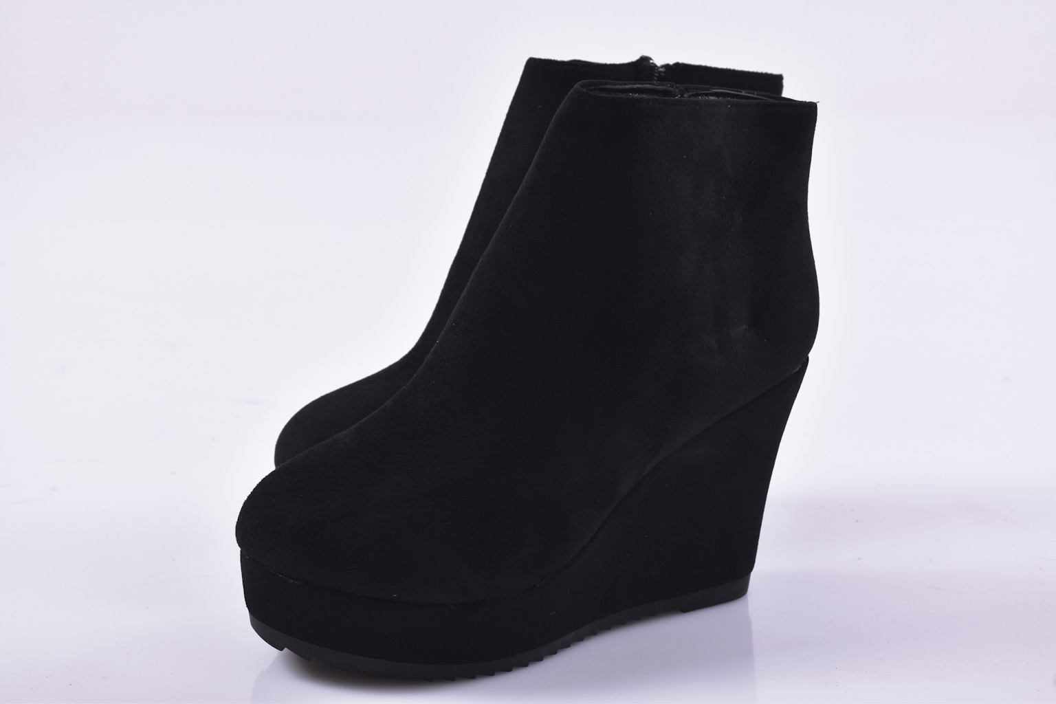 Дамски боти на платформа естествен велур черни EOBUVKIBG