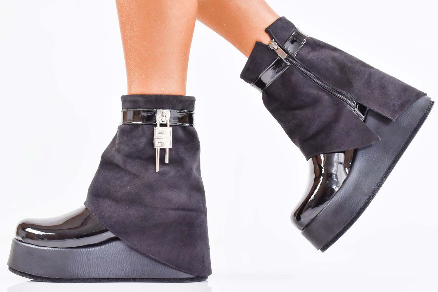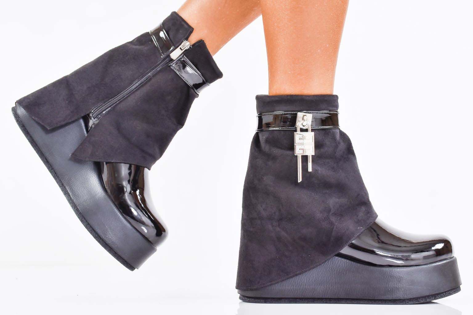 Дамски боти на платформа черни EOBUVKIBG