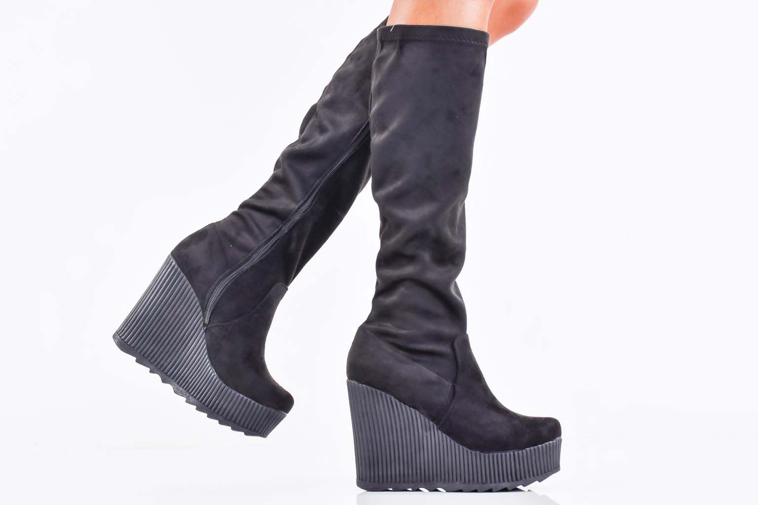 Дамски ботуши на платформа черни EOBUVKIBG #502-7272