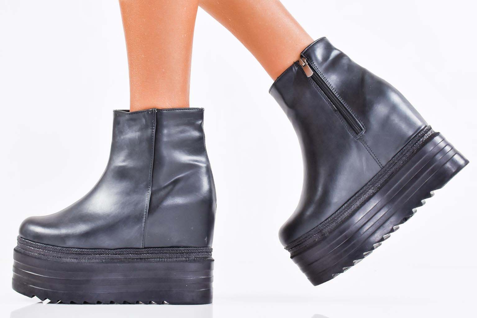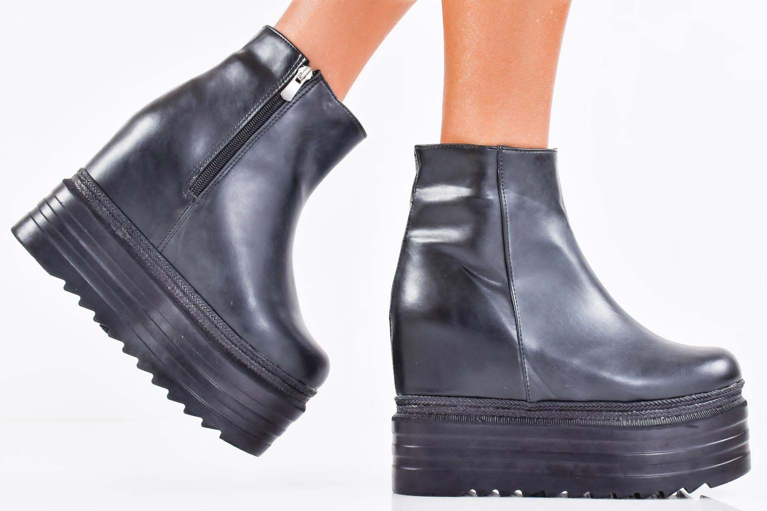 Дамски боти на платформа черни EOBUVKIBG #502-7273