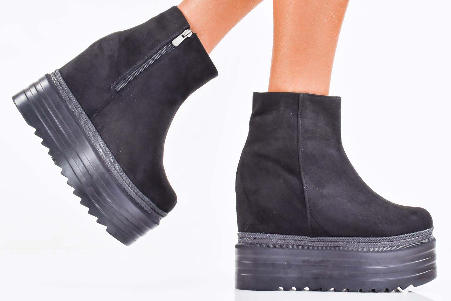 Дамски боти на платформа черни EOBUVKIBG #502-7275