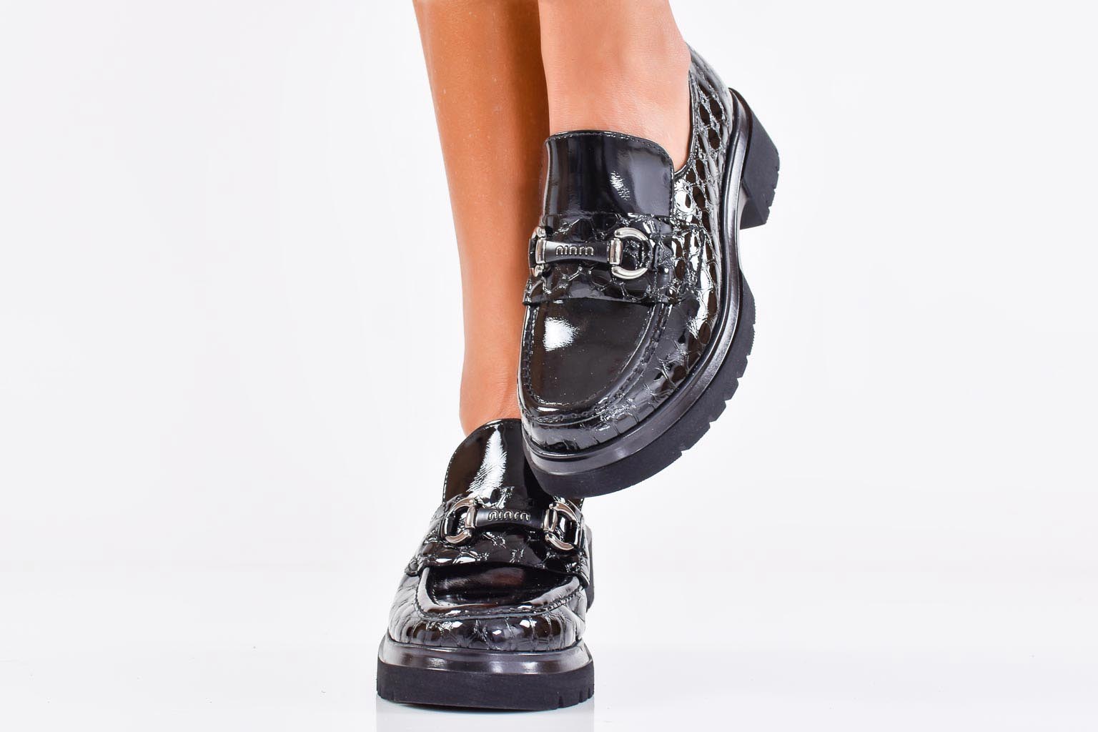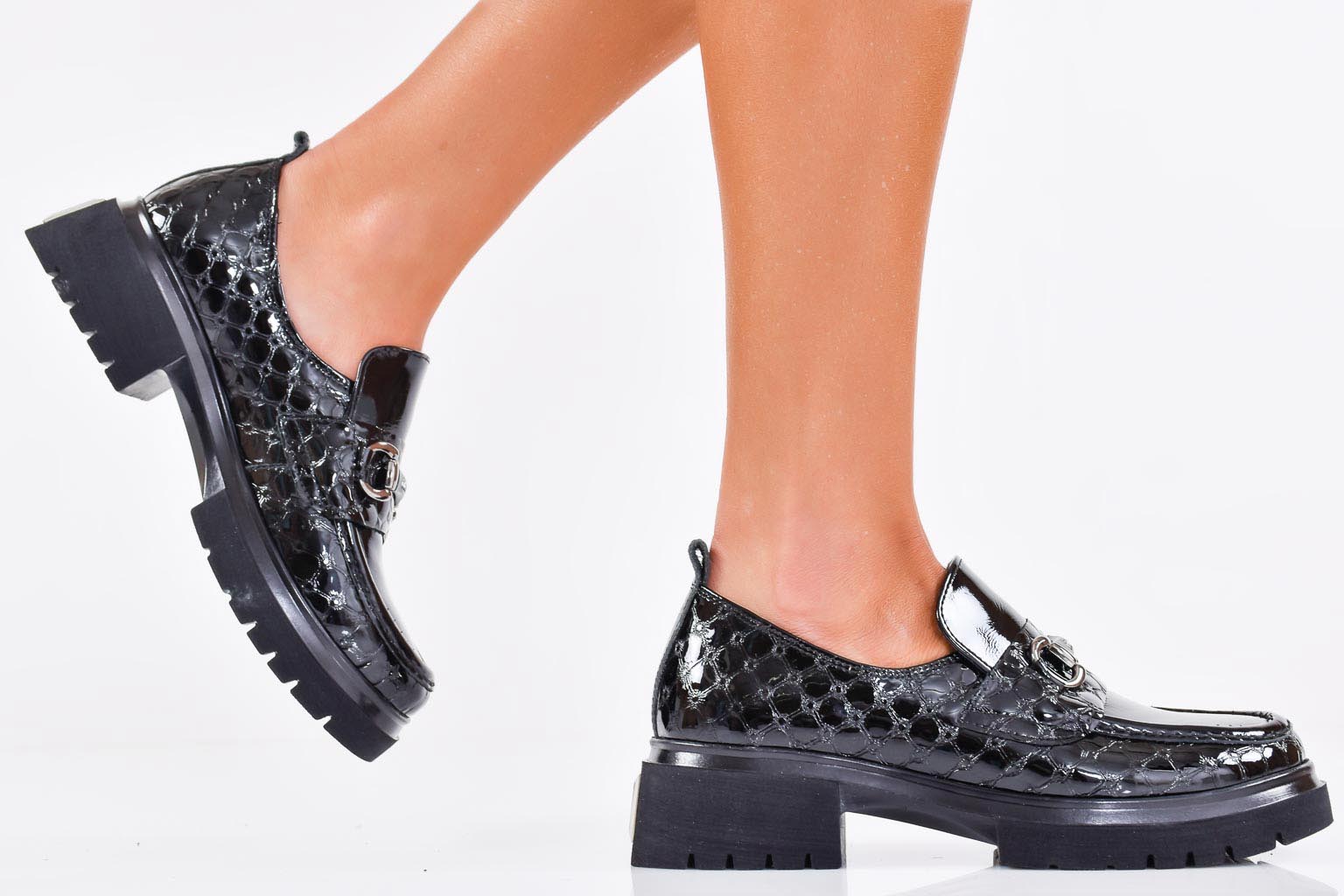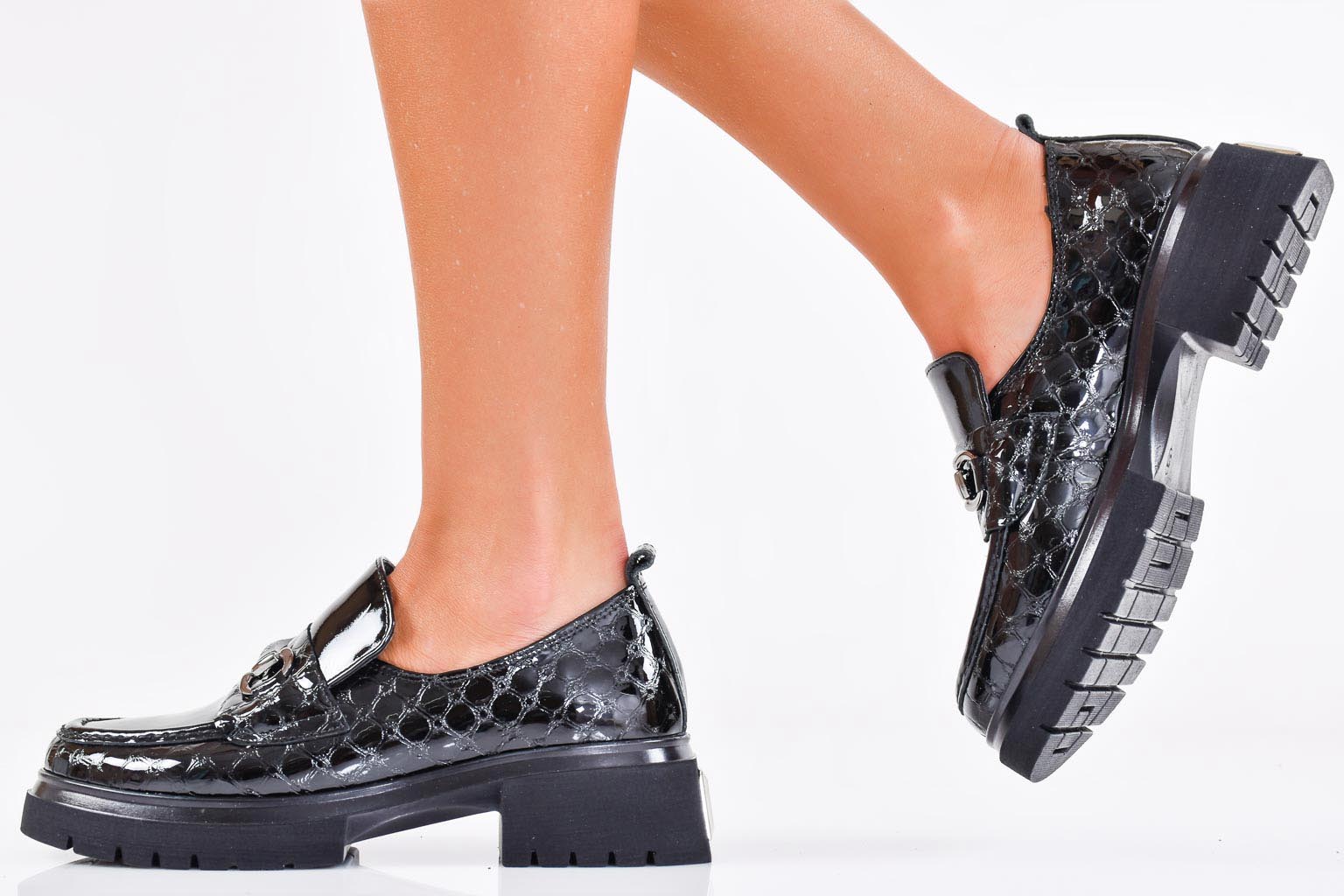 Дамски обувки естествен лак черни EOBUVKIBG #502-6937