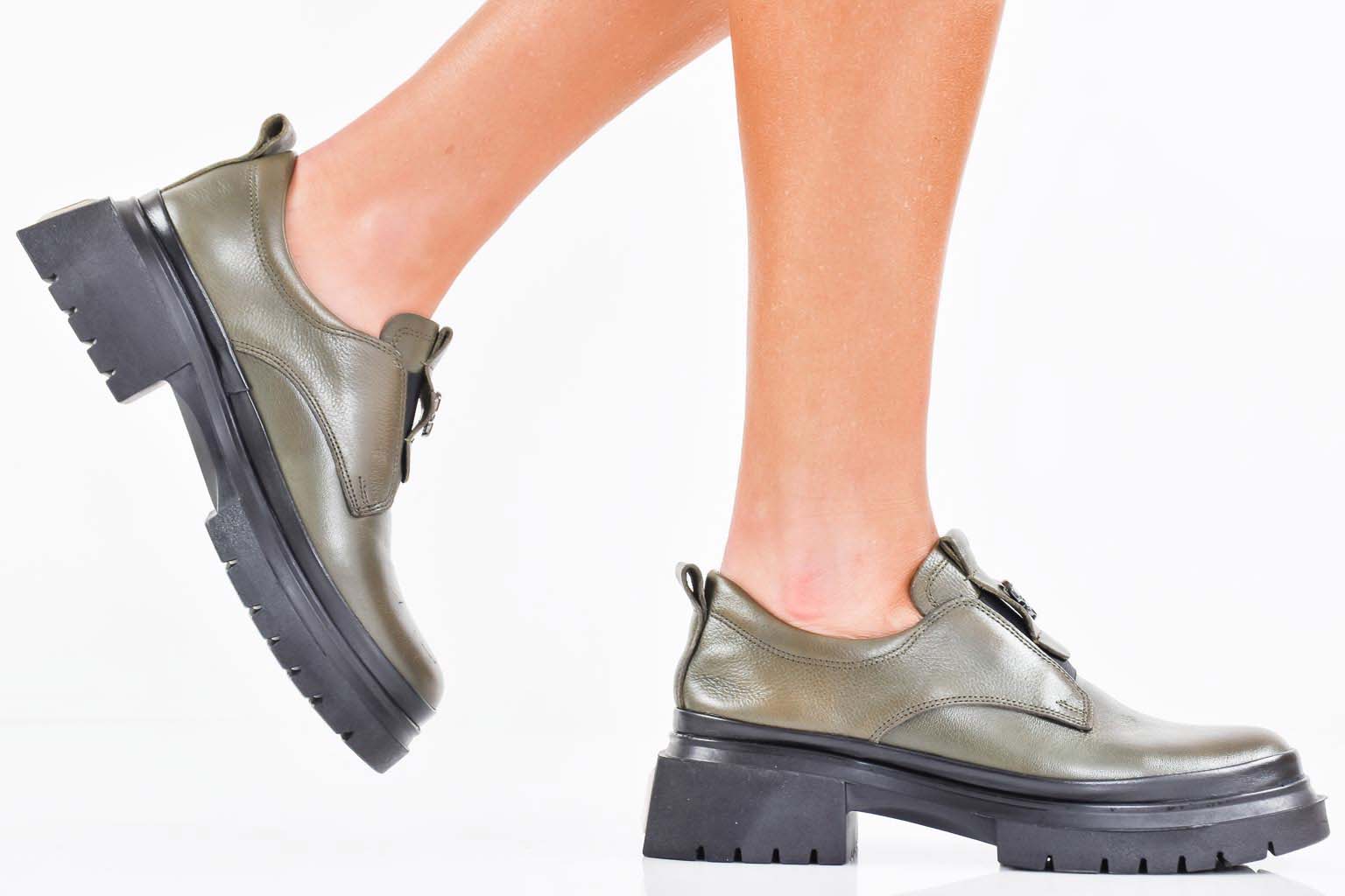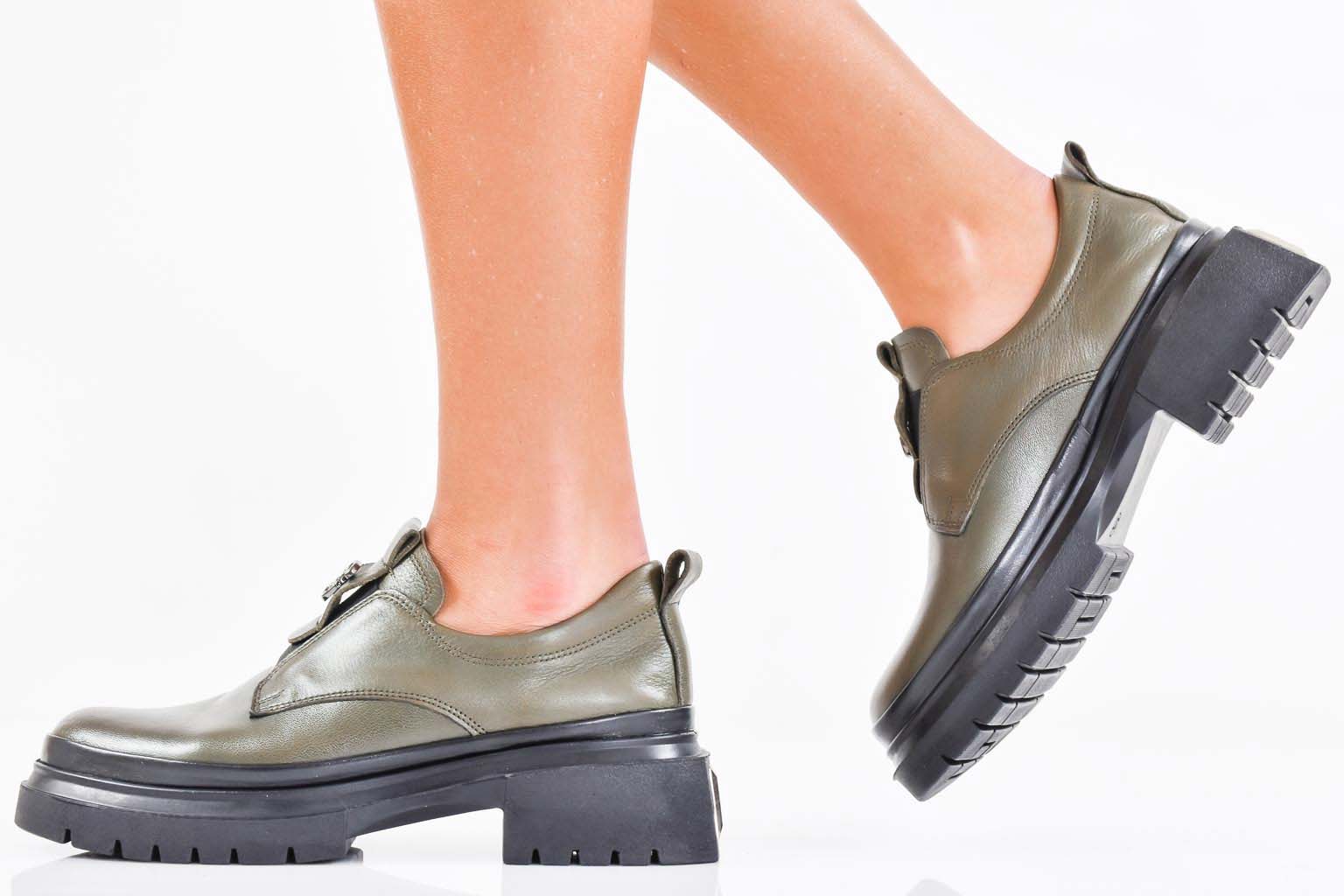 Дамски лоуфъри естествена кожа зелени EOBUVKIBG #502-7300