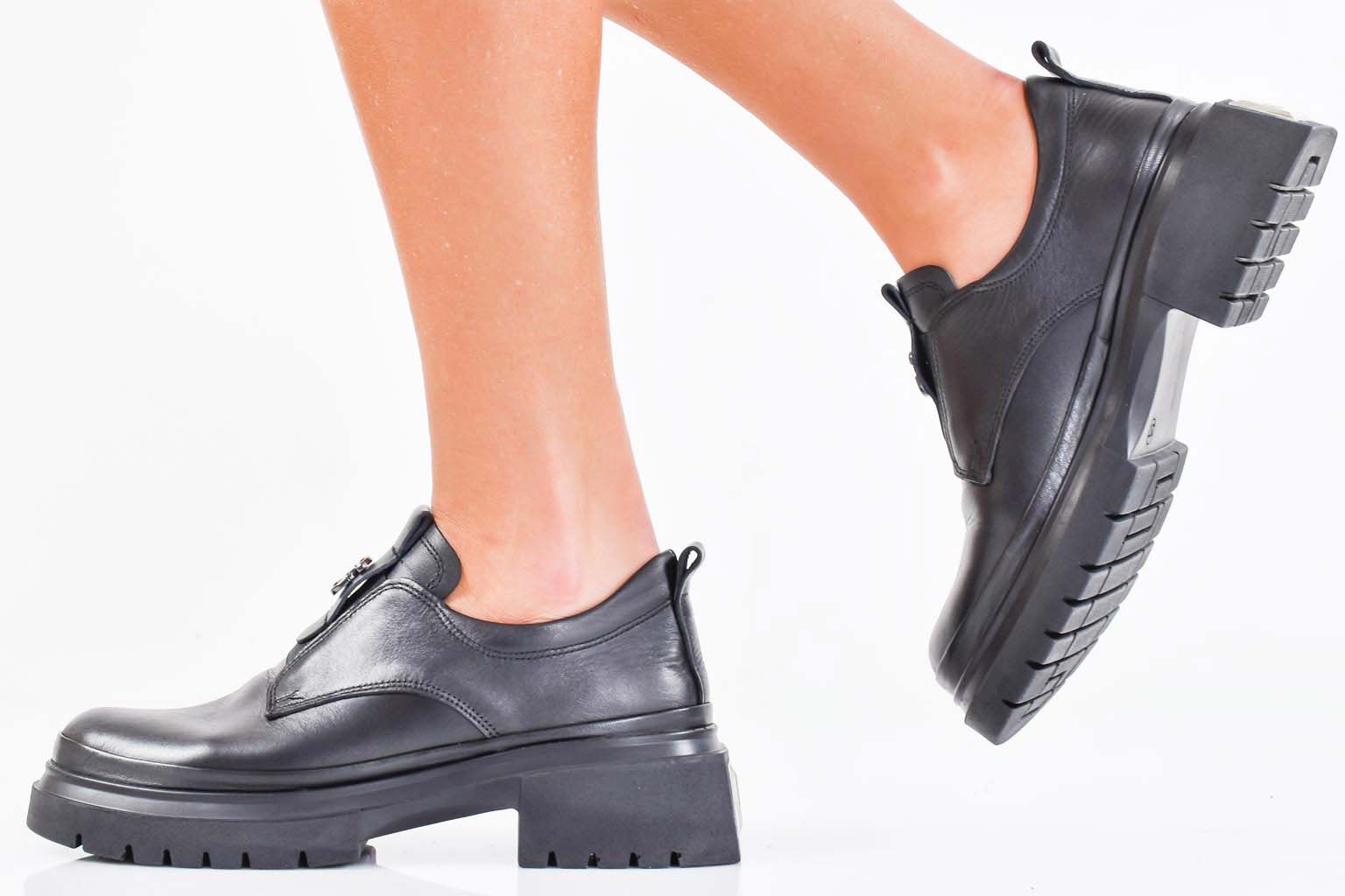 Дамски лоуфъри естествена кожа черни EOBUVKIBG