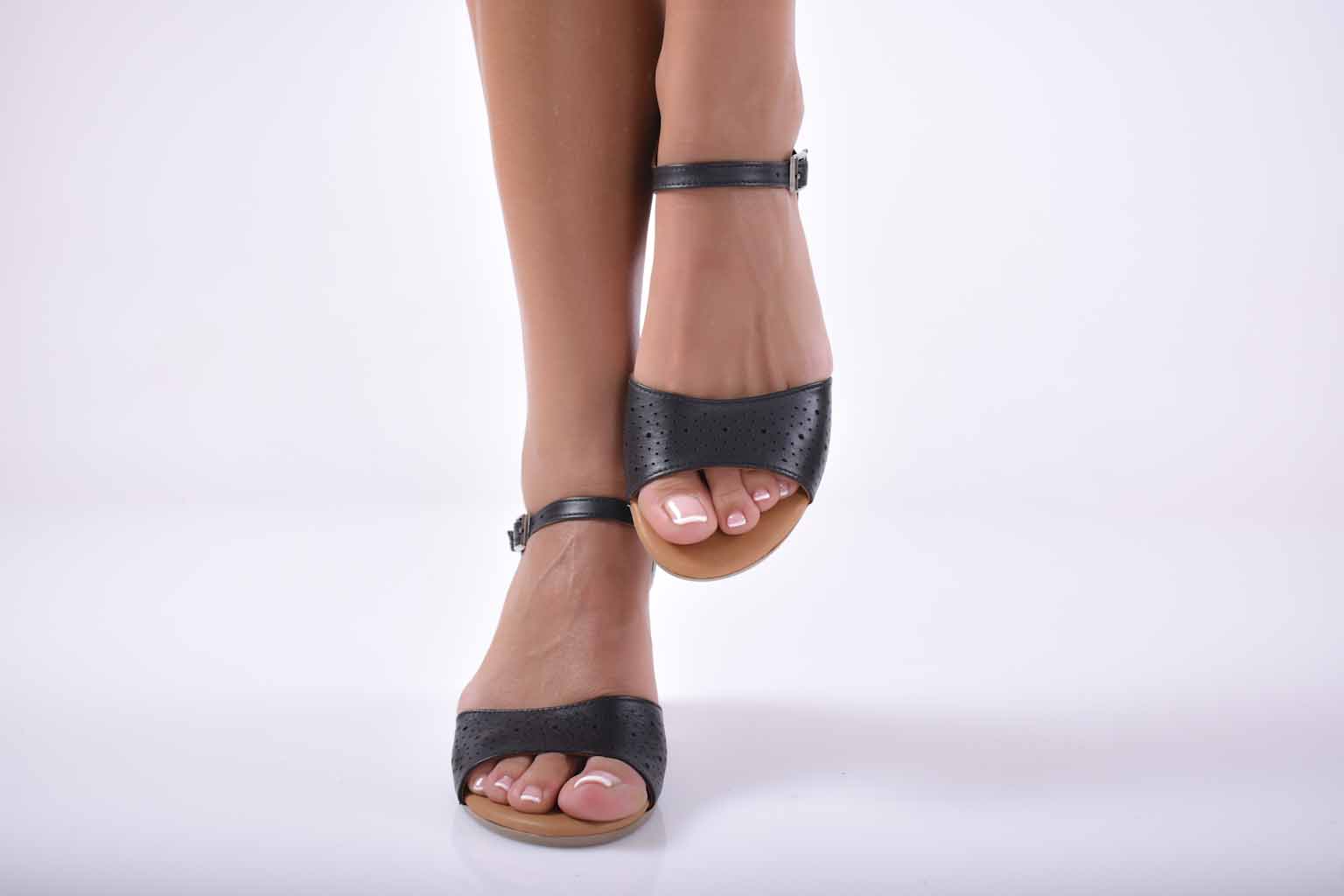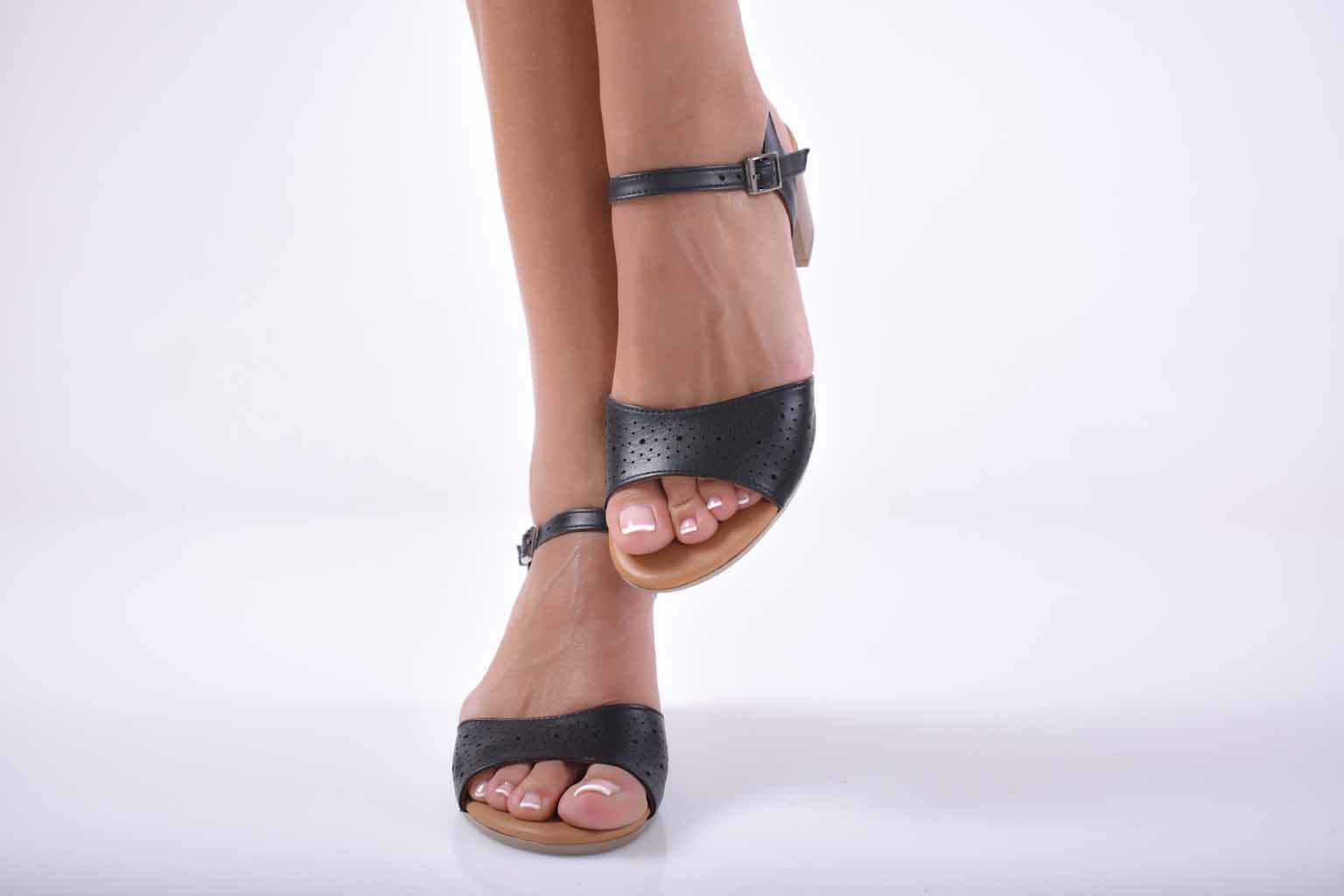 Елегатни сандали естествена кожа черни EOBUVKIBG #501-1701