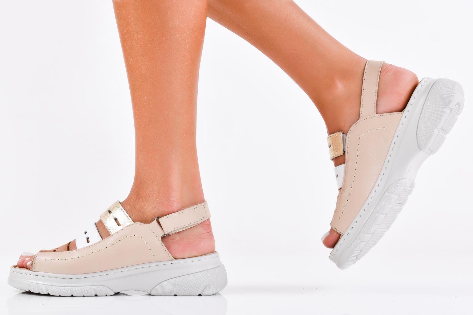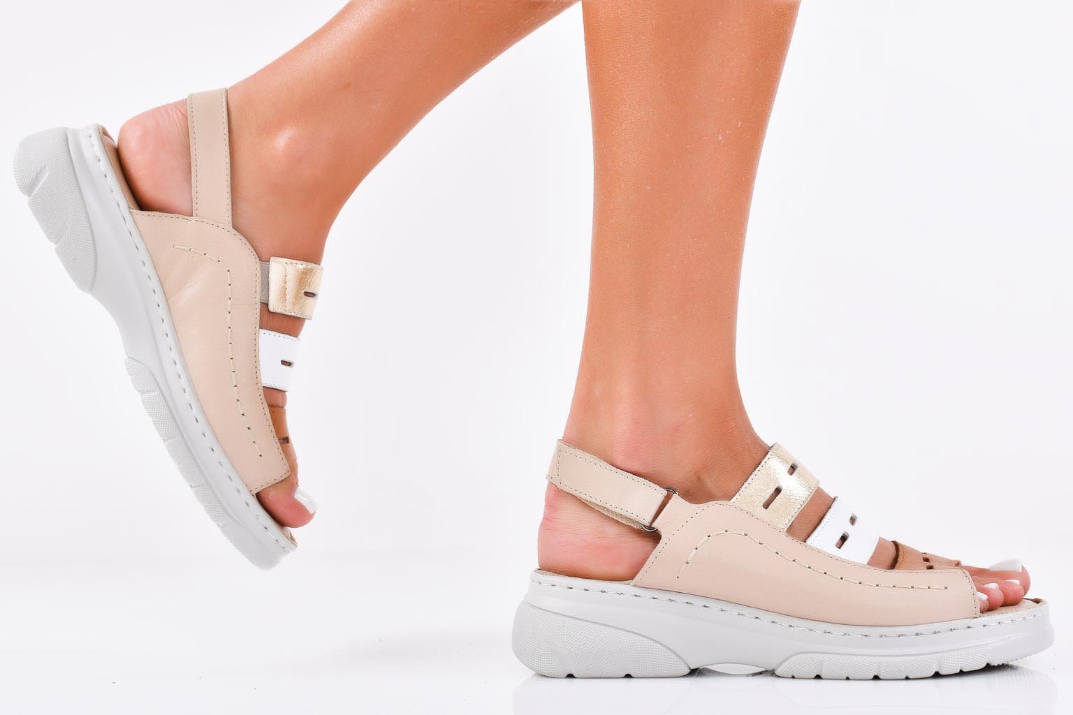 Дамски сандали естествена кожа бежови EOBUVKIBG #502-6661