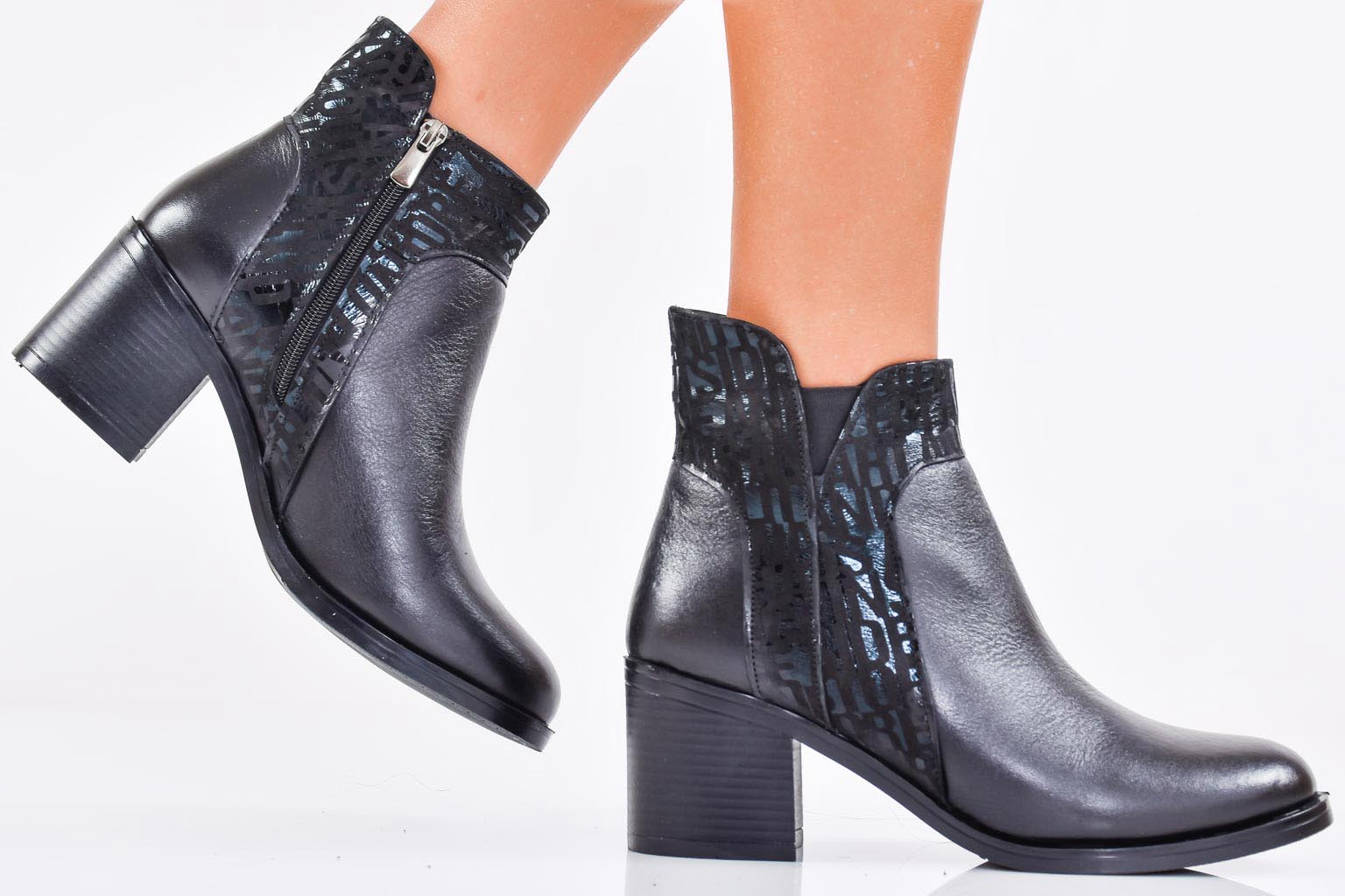 Дамски елегантни боти естествена кожа черни EOBUVKIBG