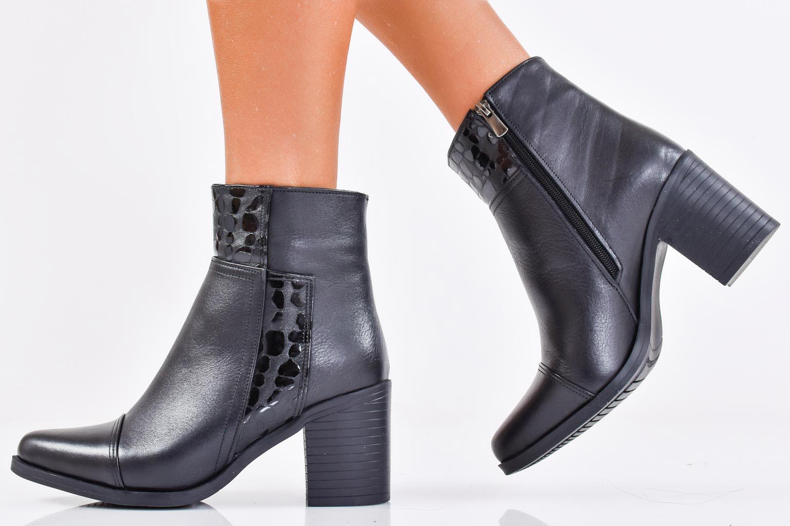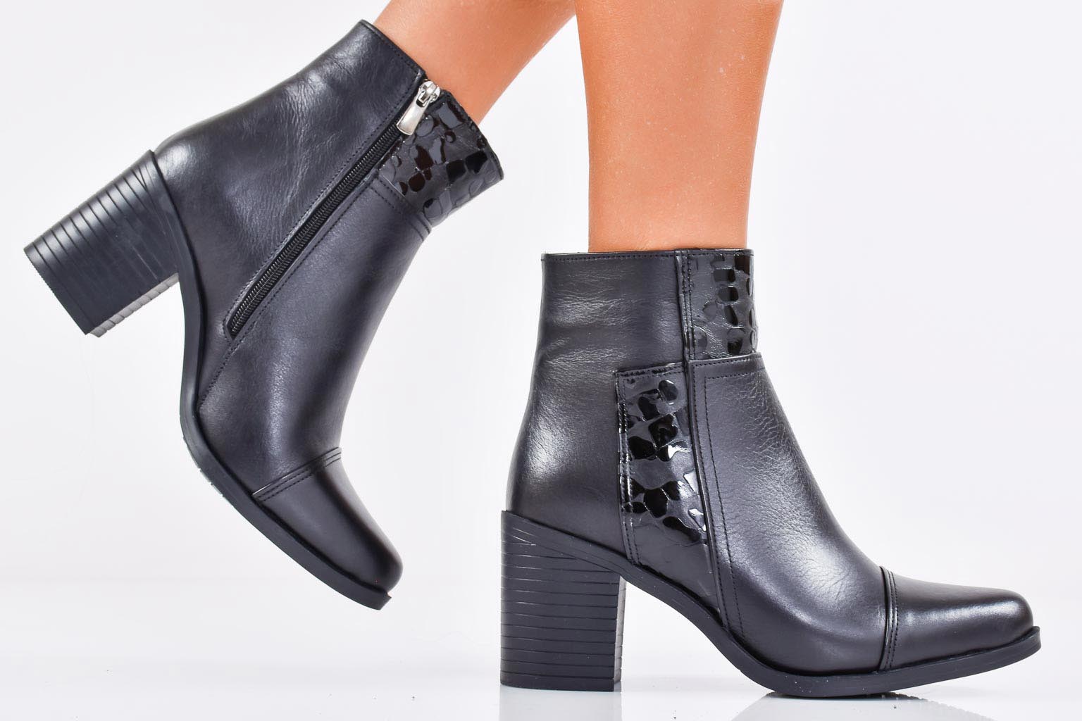 Дамски елегантни боти естествена кожа черни EOBUVKIBG