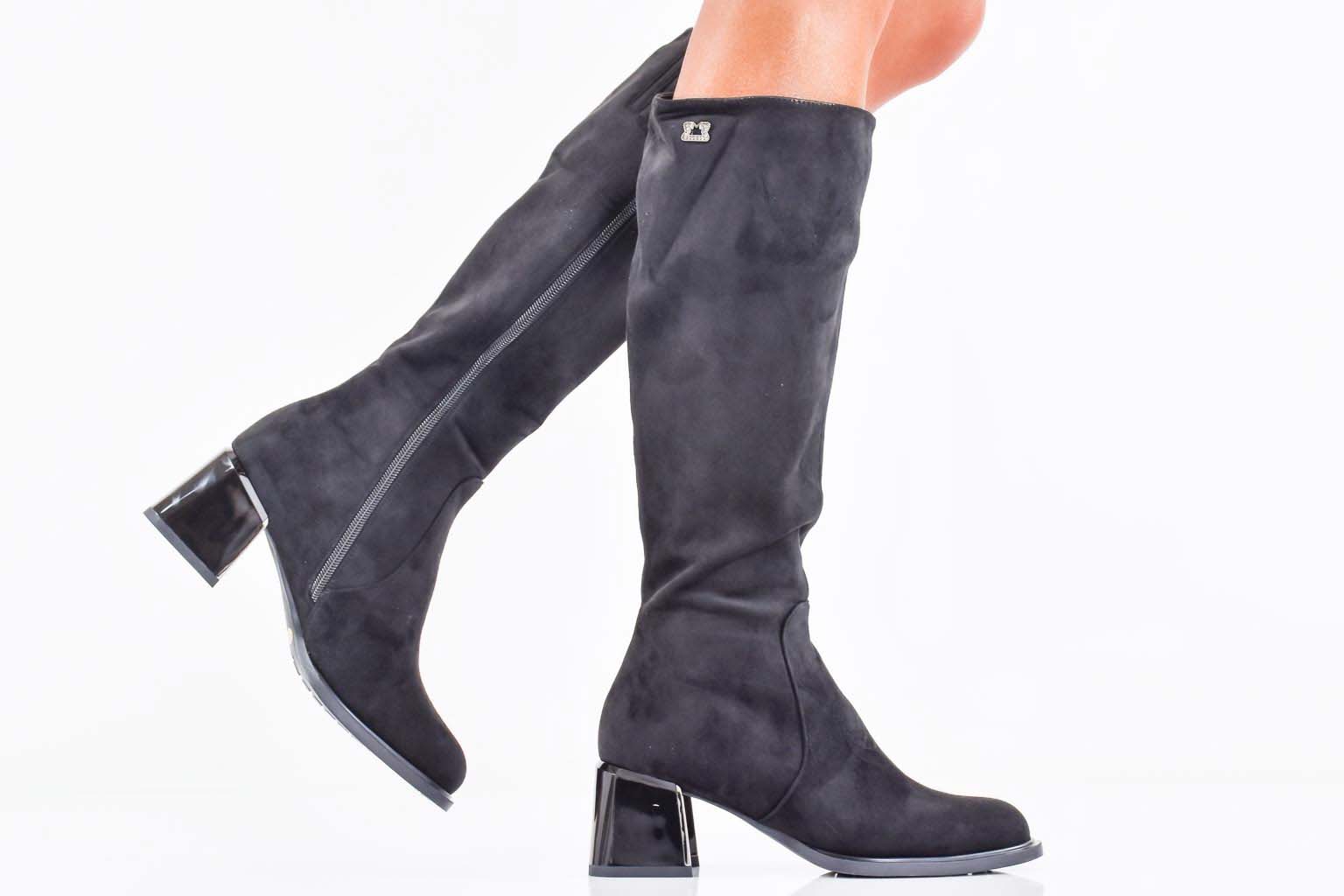 Дамски елегантни ботуши черни EOBUVKIBG #502-7328
