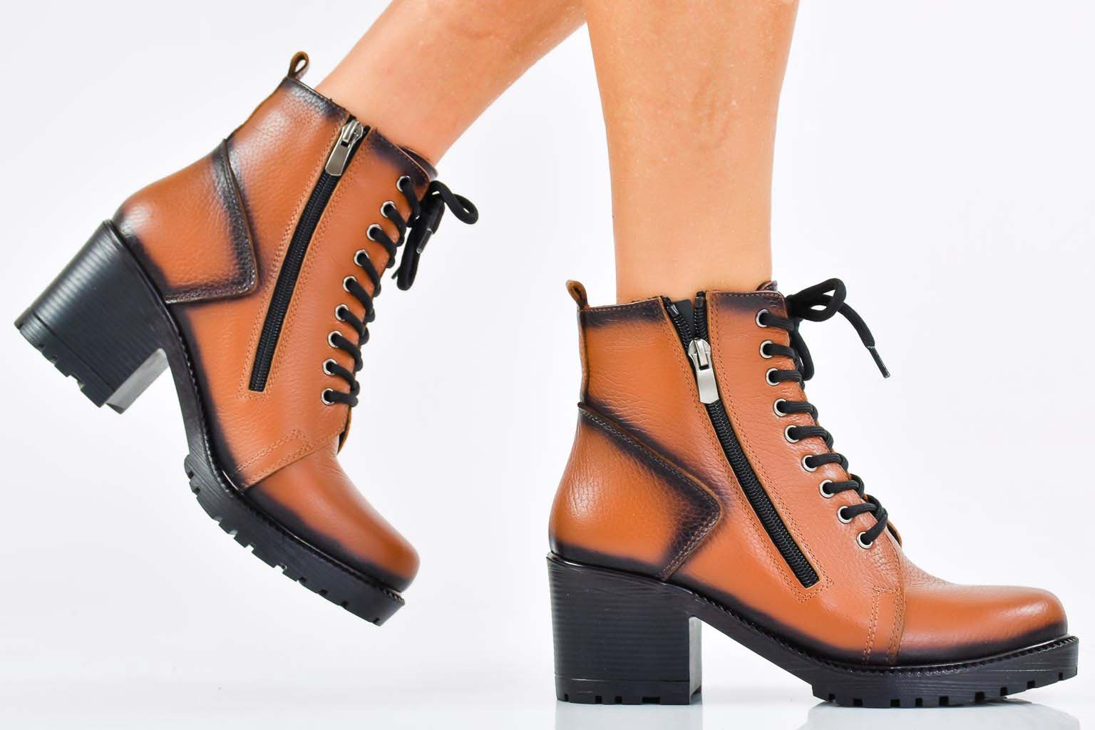 Дамски боти естествена кожа кафяви EOBUVKIBG