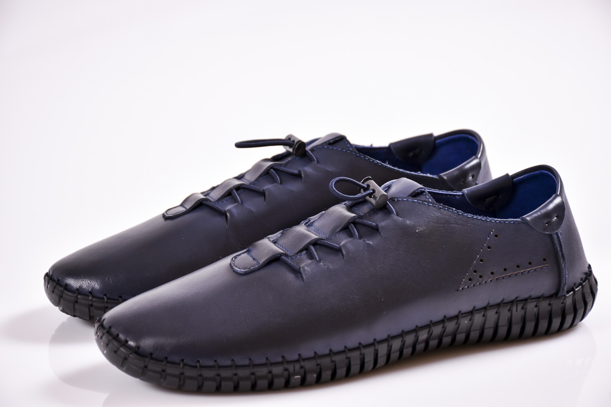 Мъжки спортно елегантни обувки естествена кожа сини #500-5314