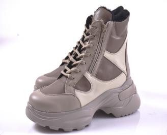 Дамски боти естествена кожа бежови EOBUVKIBG