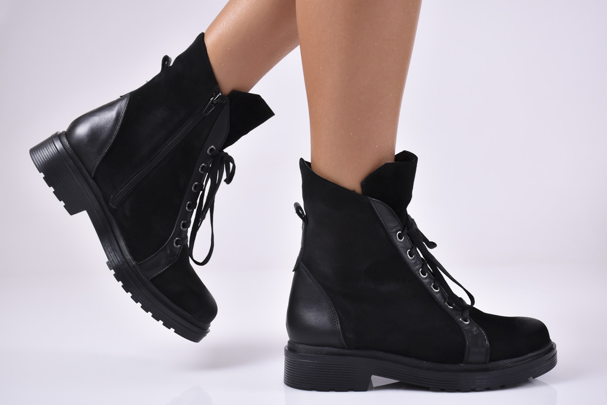 Дамски ежедневни боти естествена кожа черни #501-0495