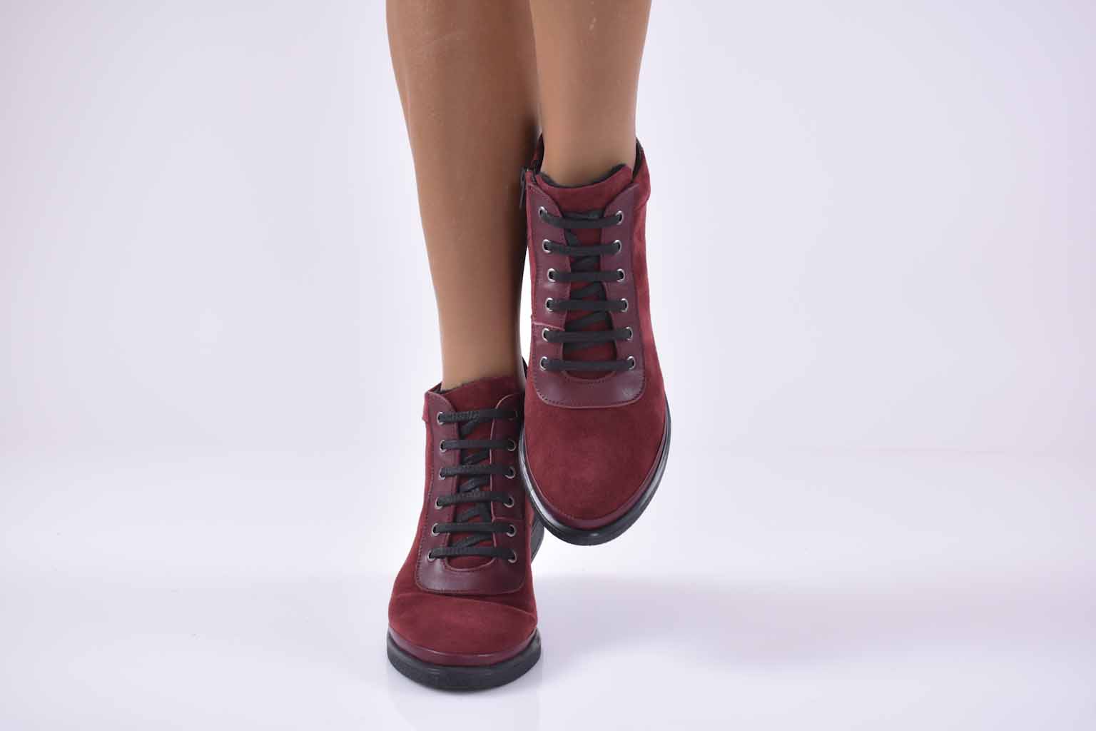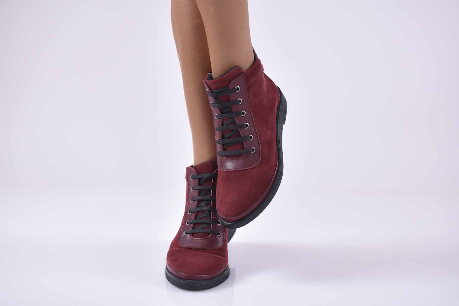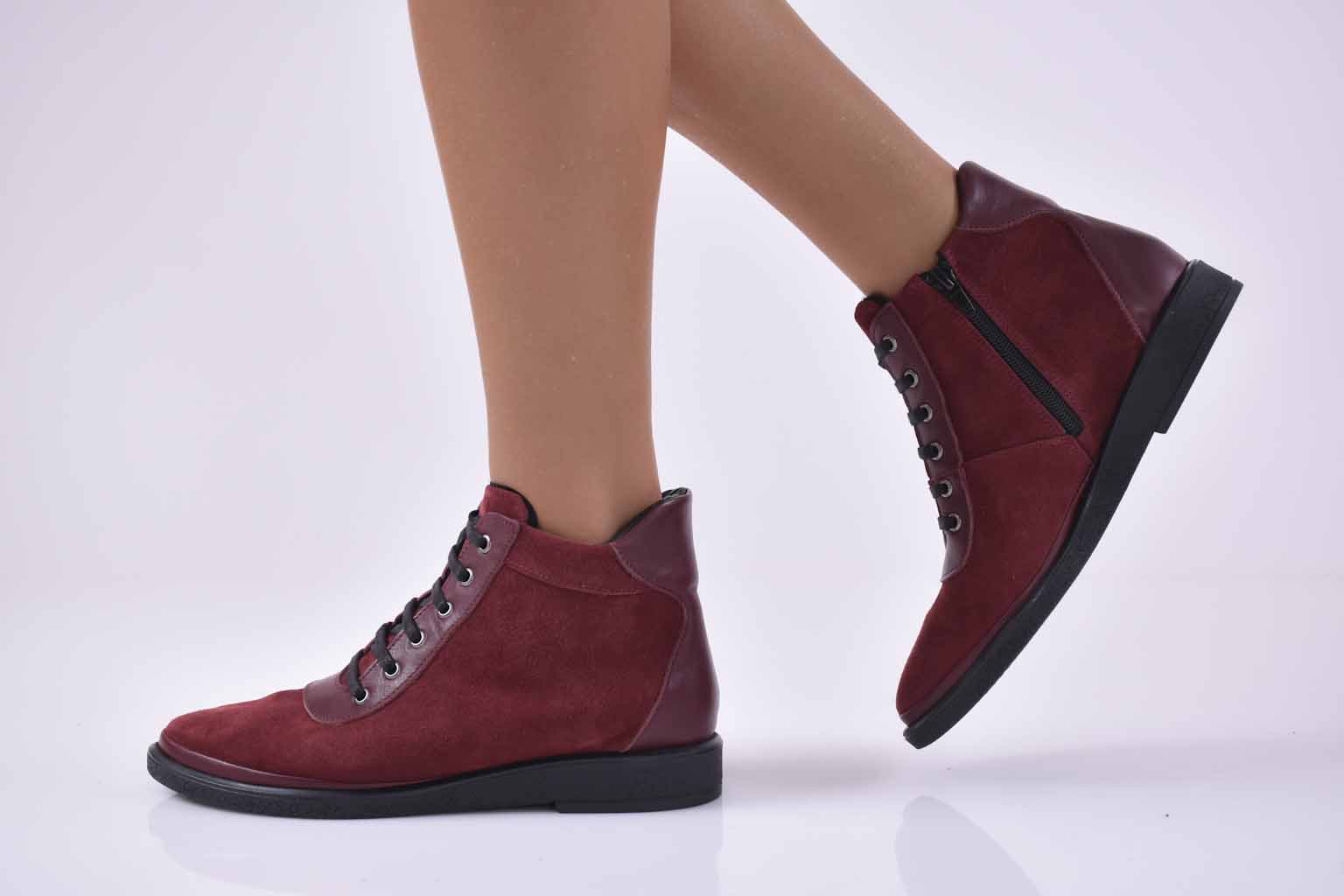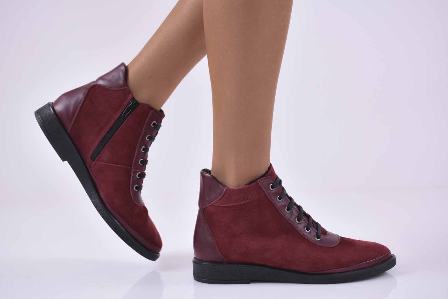Дамски ежедневни боти естествена кожа бордо EOBUVKIBG #501-2320