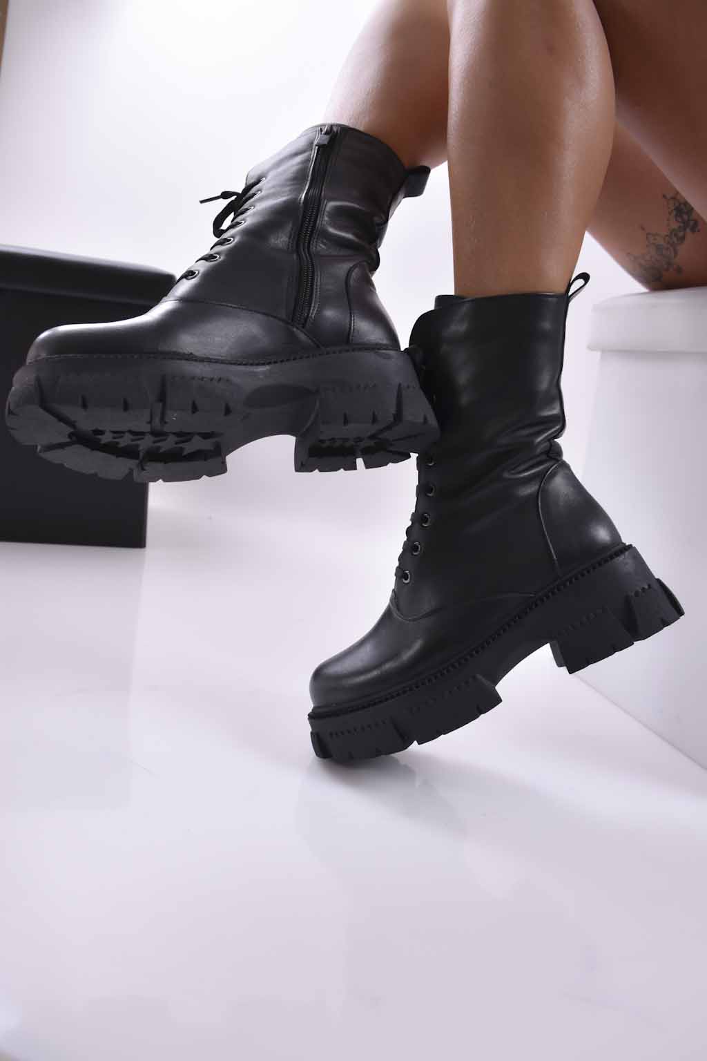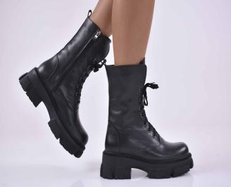 Дамски боти естествена кожа черни EOBUVKIBG
