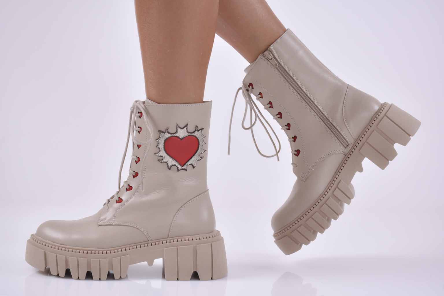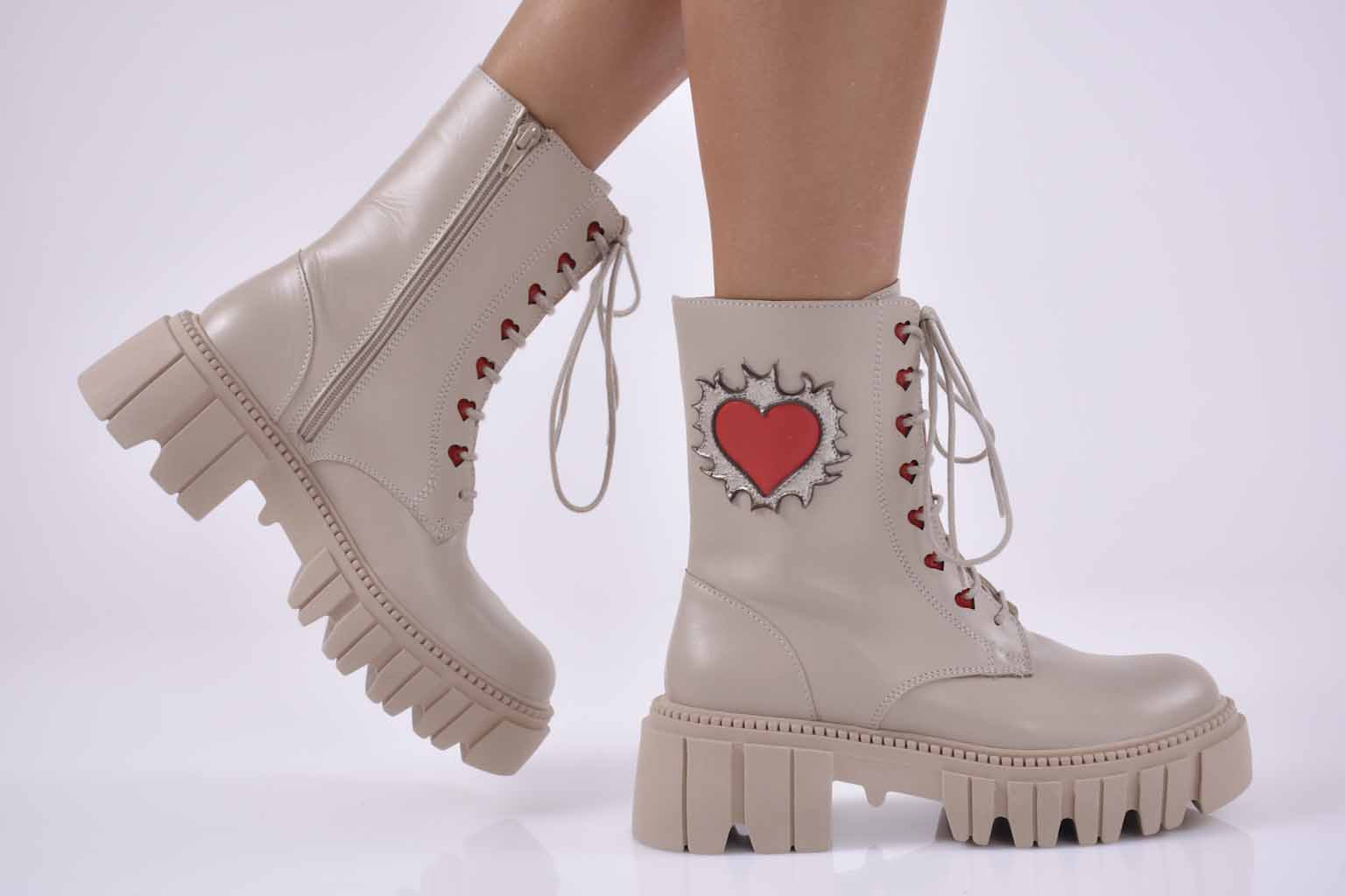 Дамски боти естествена кожа бежови EOBUVKIBG