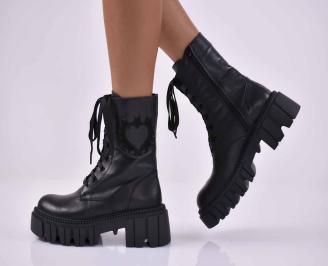Дамски боти естествена кожа черни EOBUVKIBG #501-9455