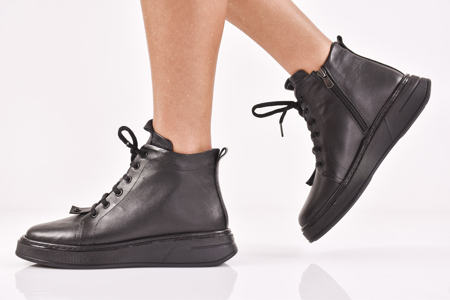 Дамски боти естествена кожа черни EOBUVKIBG