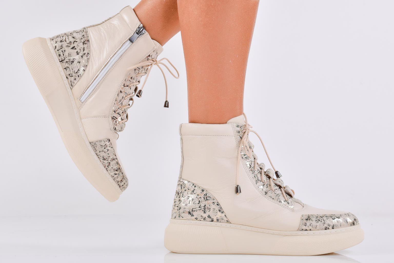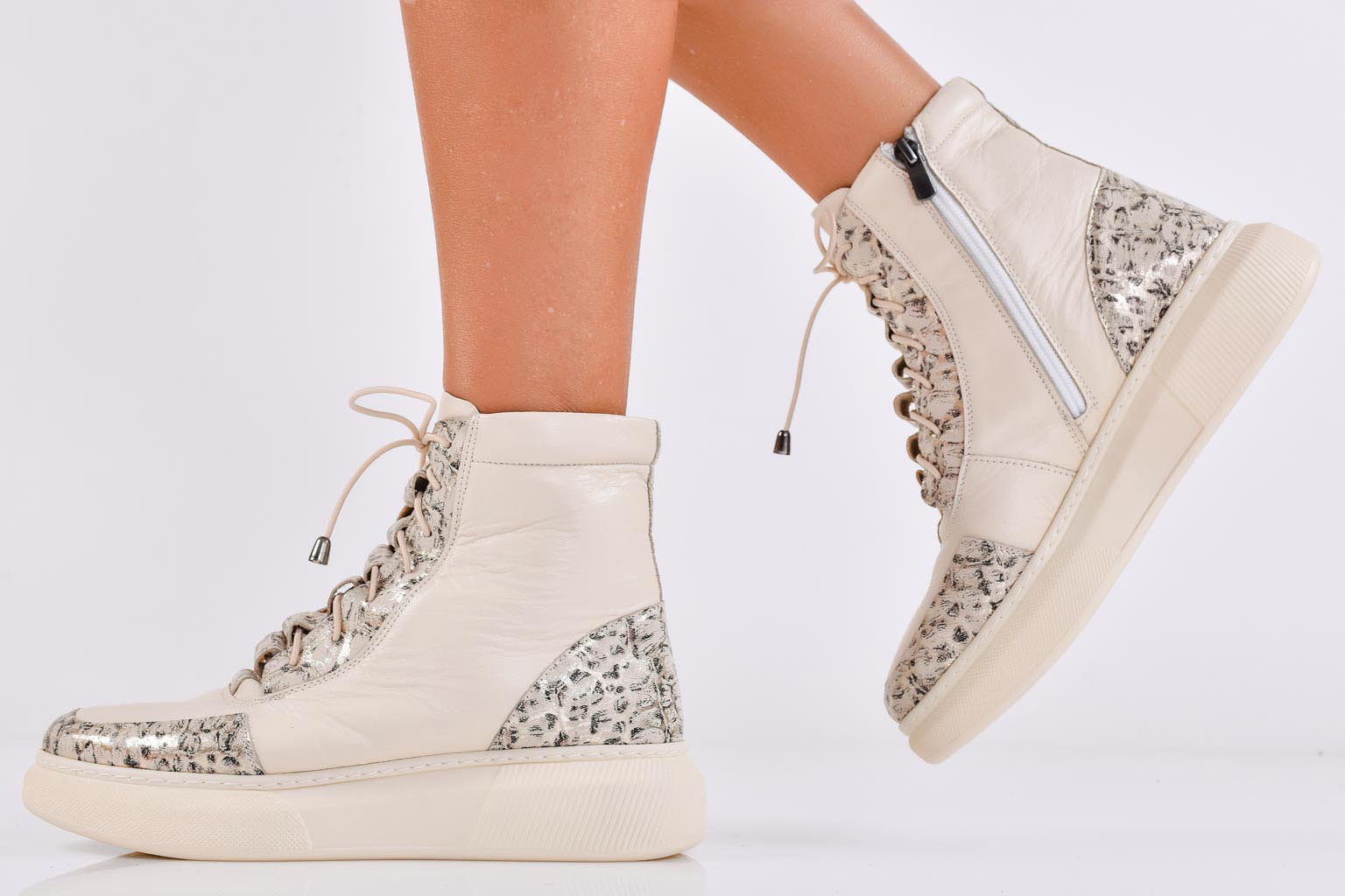 Дамски боти естествена кожа бежови EOBUVKIBG #502-6843