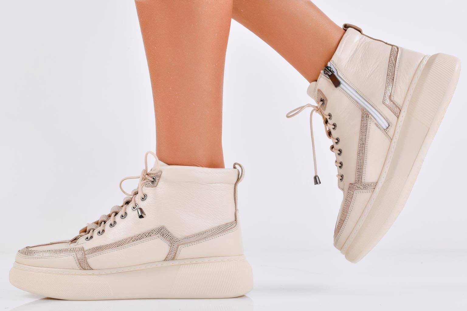 Дамски боти естествена кожа бежови EOBUVKIBG