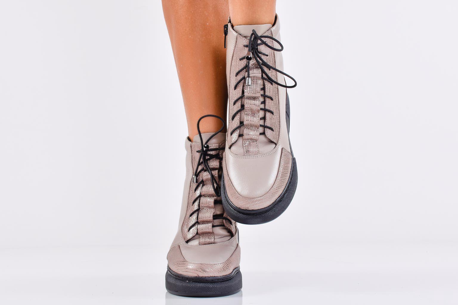 Дамски боти естествена кожа бежови EOBUVKIBG #502-6852
