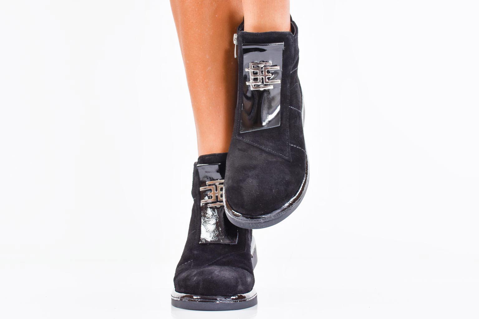 Дамски боти естествен лак черни EOBUVKIBG