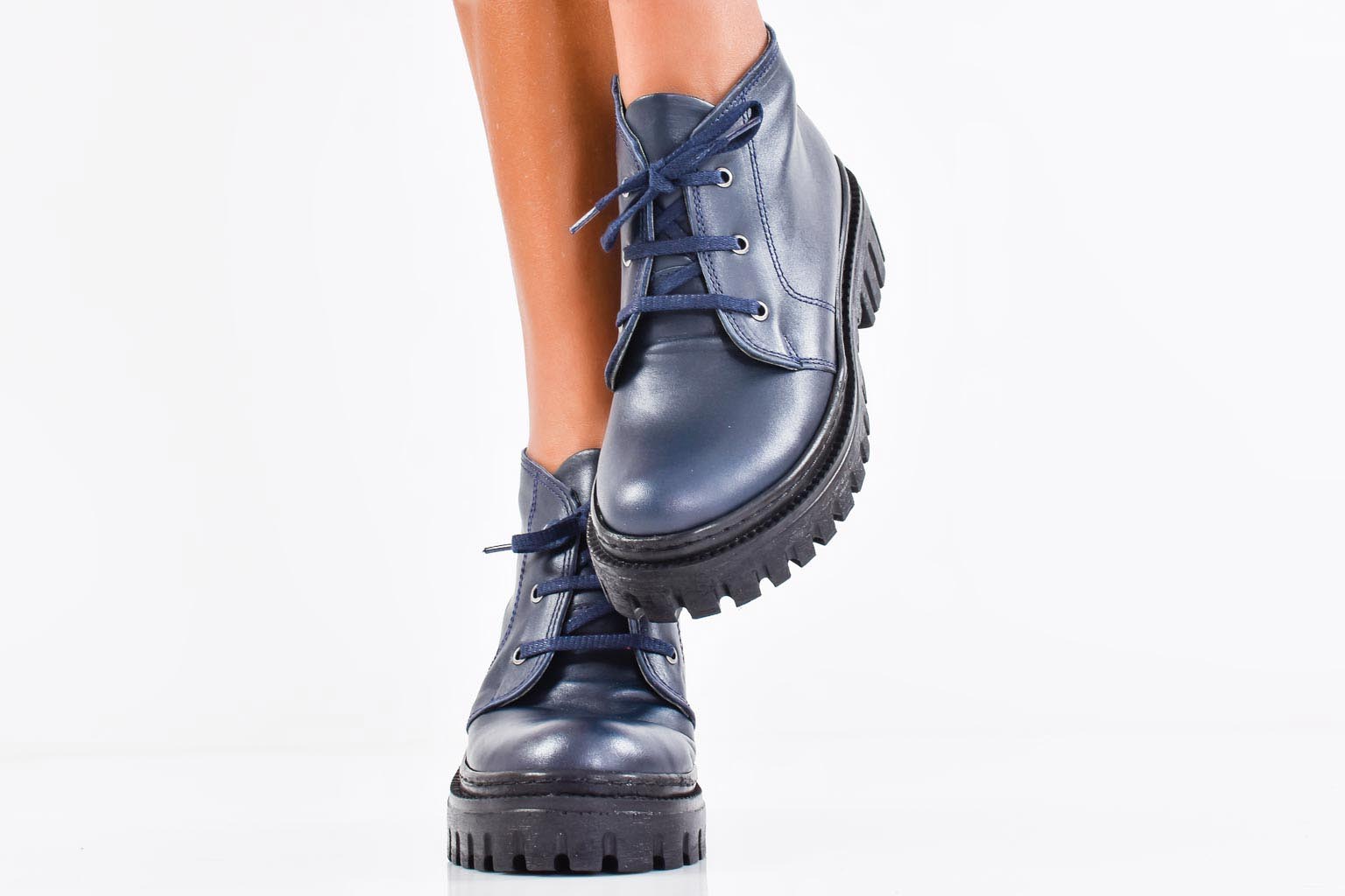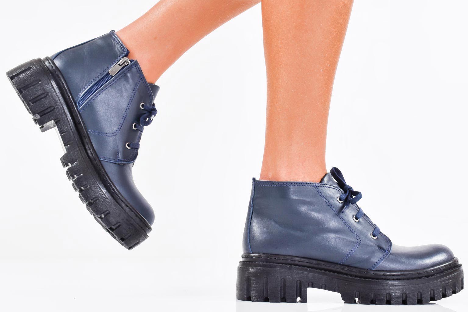 Дамски боти естествена кожа сини EOBUVKIBG