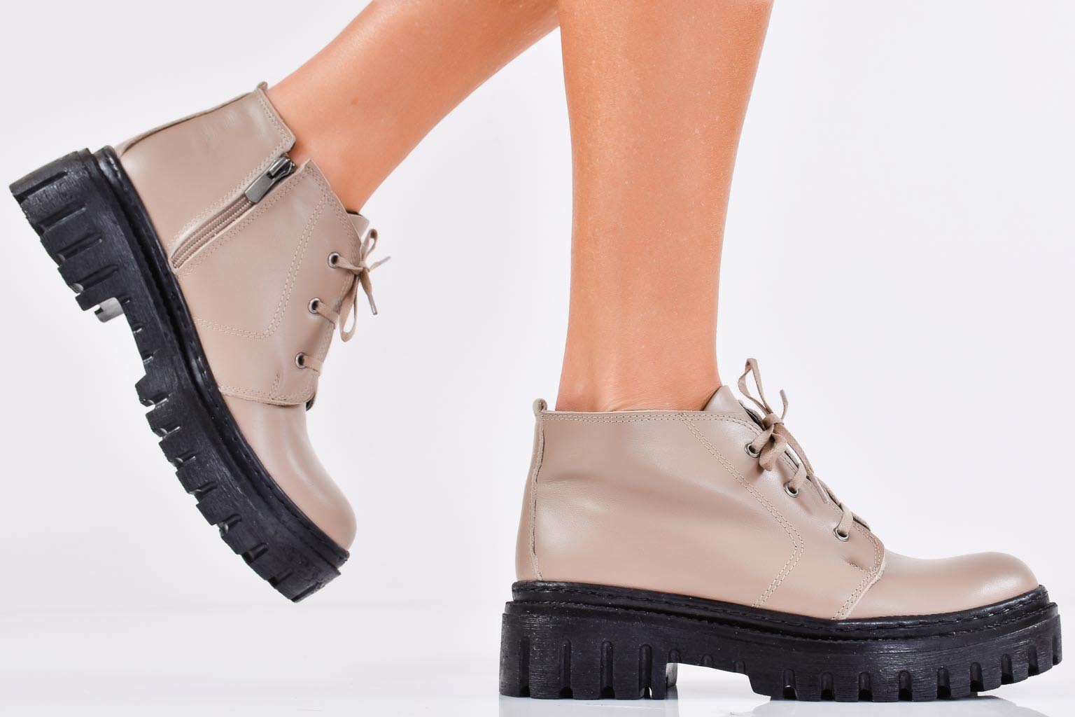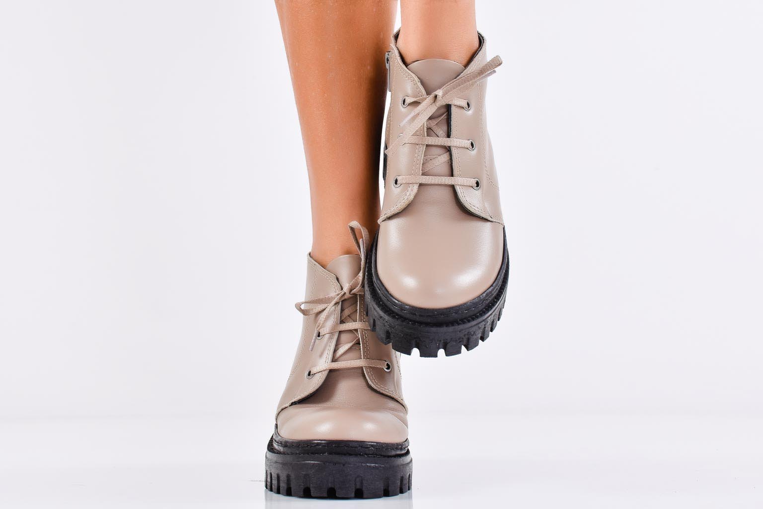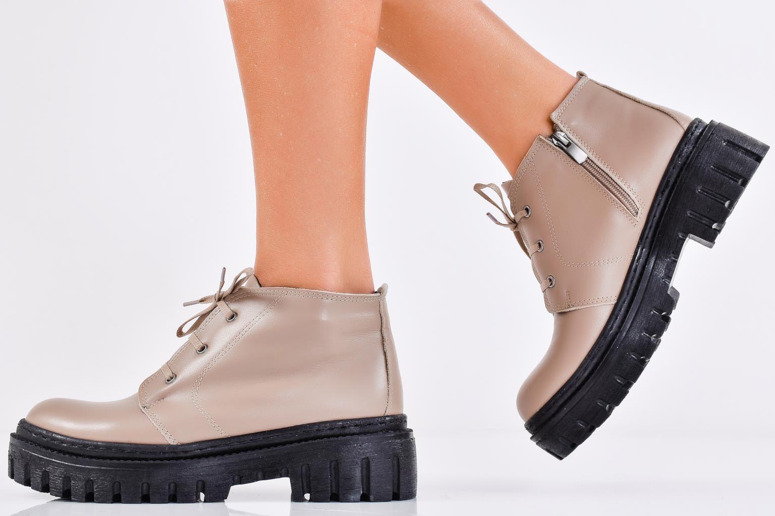 Дамски боти естествена кожа бежови EOBUVKIBG