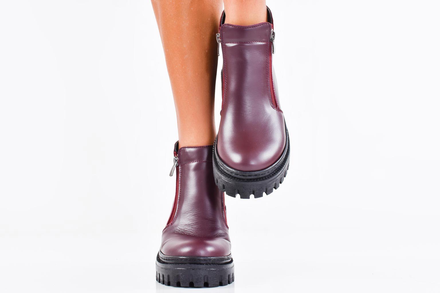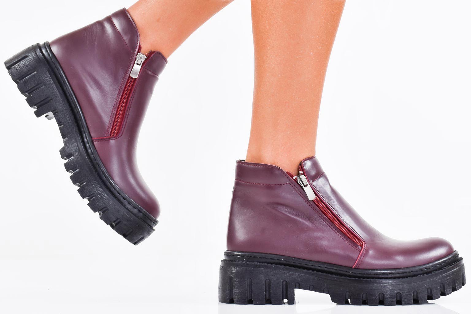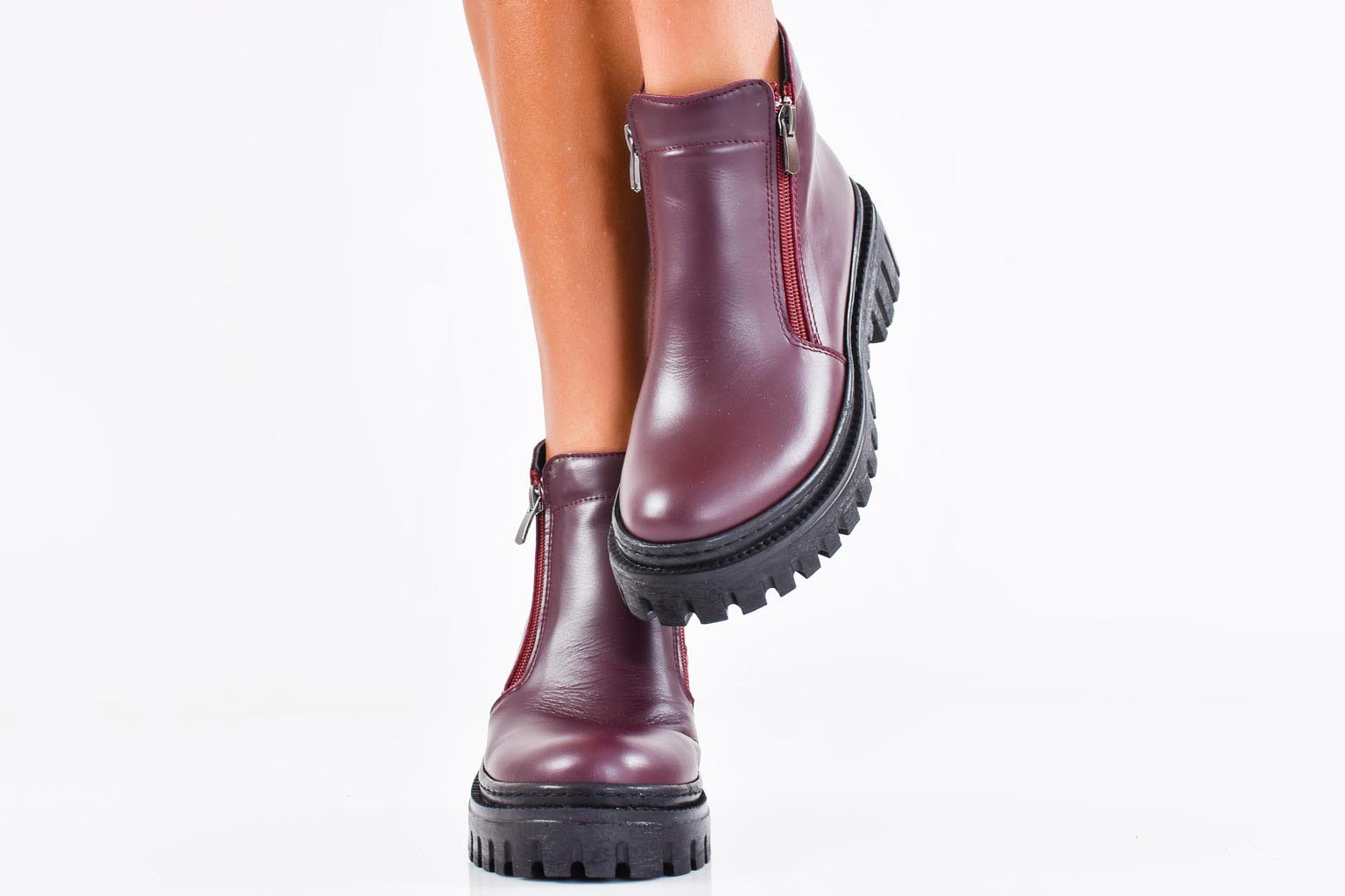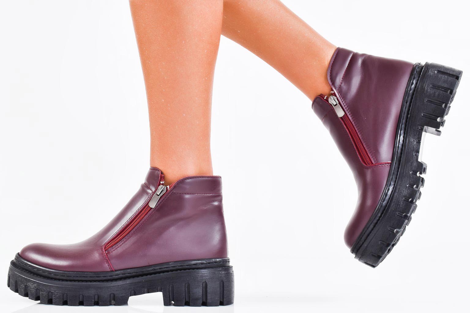 Дамски ежедневни боти естествена кожа бордо EOBUVKIBG