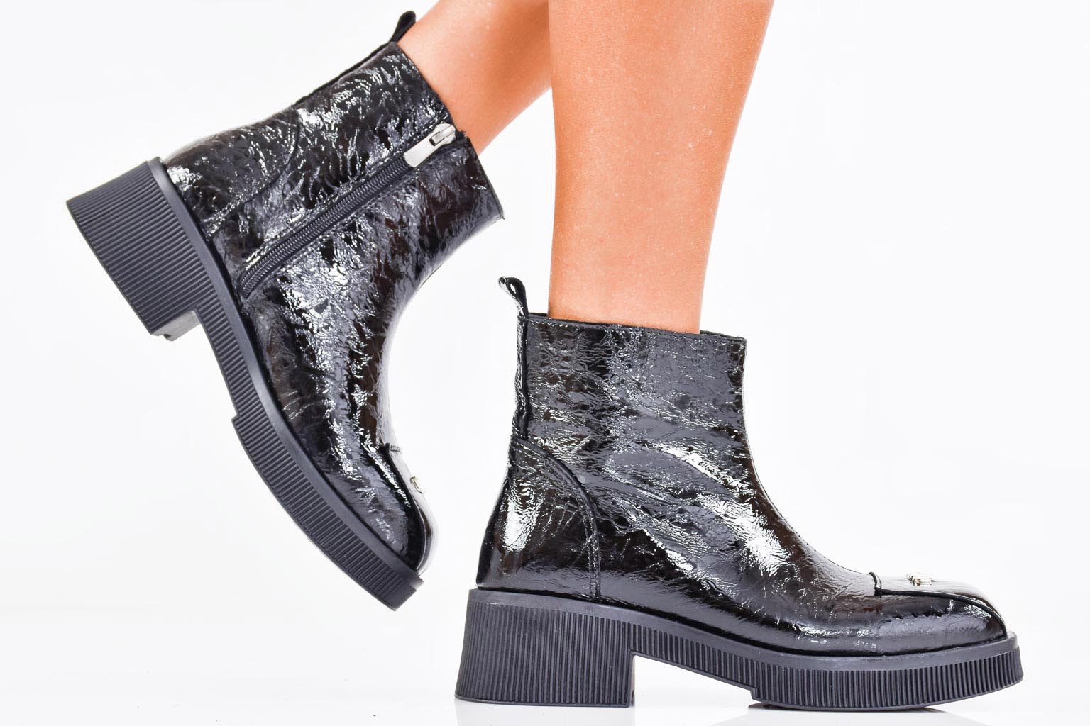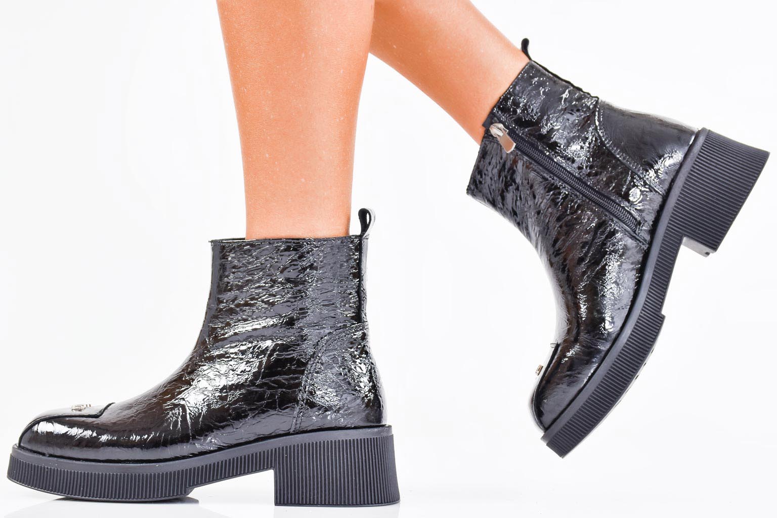 Дамски боти естествен лак черни EOBUVKIBG