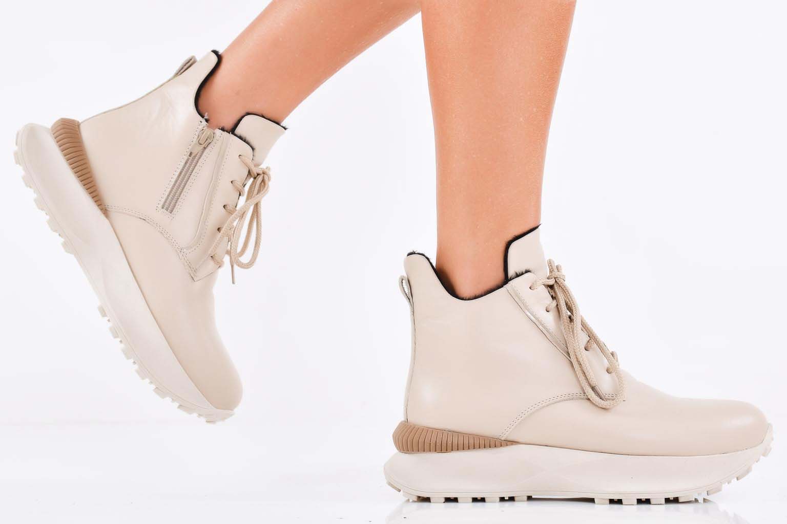 Дамски боти естествена кожа бежови EOBUVKIBG