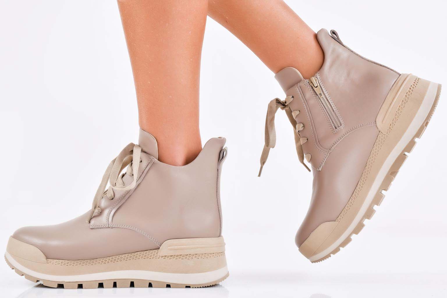 Дамски боти естествена кожа бежов EOBUVKIBG