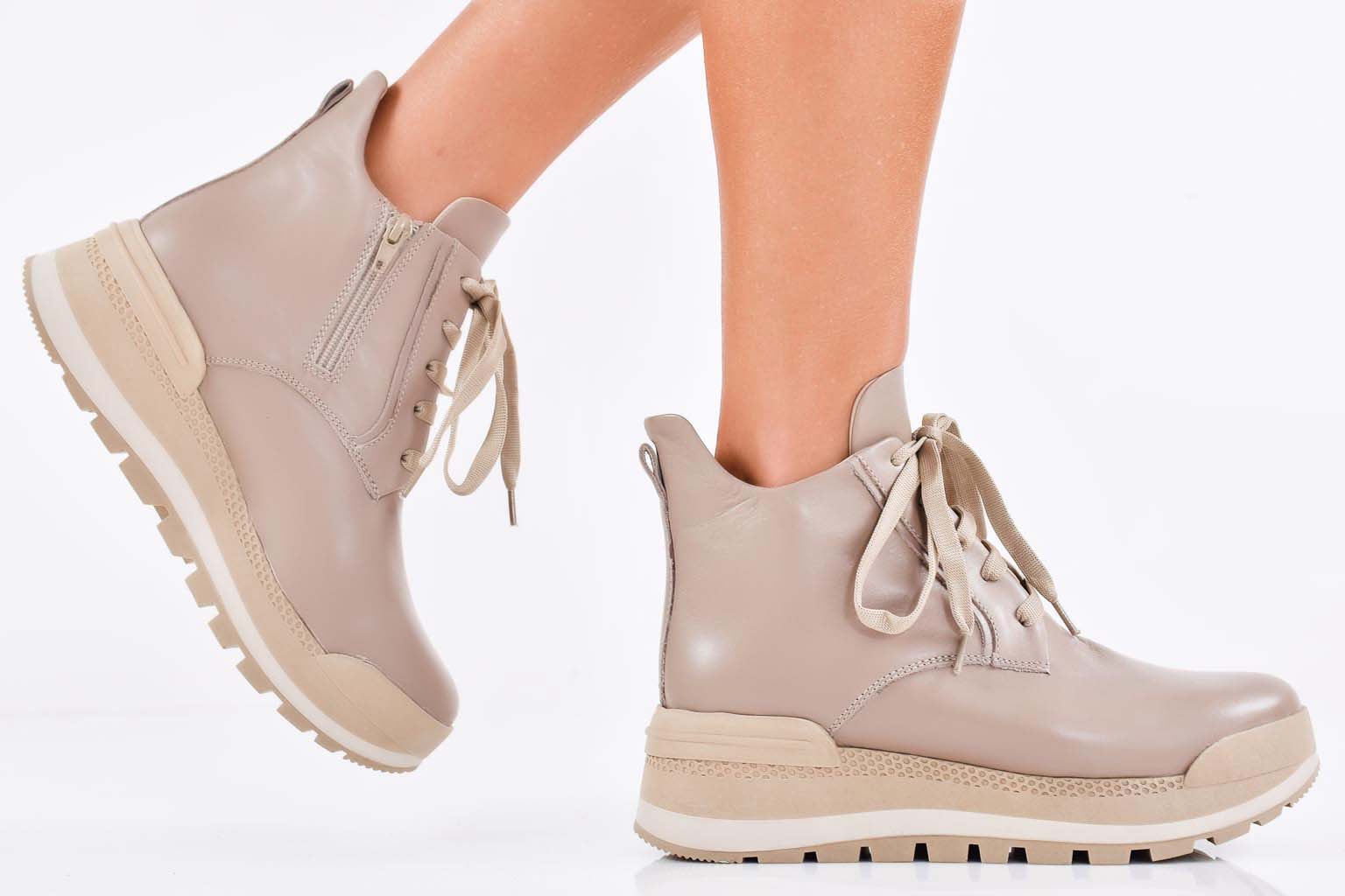 Дамски боти естествена кожа бежови EOBUVKIBG